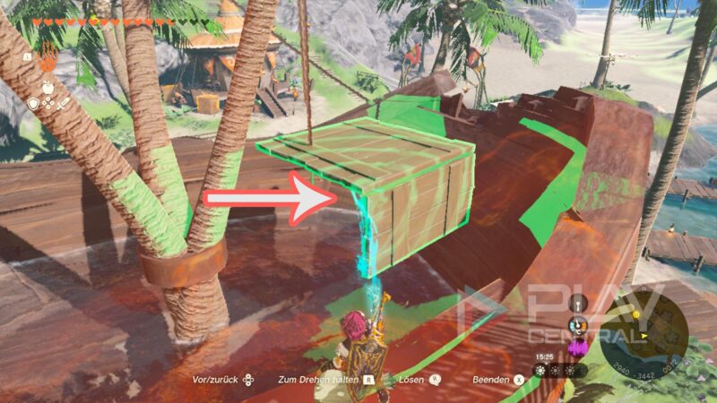 Was gibt es beim Truhenspielladen tun? Hierbei handelt es sich um ein größeres Gebäude. Deshalb muss der Palmenbaumstamm auf der oberen Etage platziert werden. Dafür ist der Pflanztopf da.