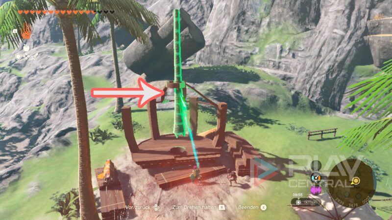 - Die Monster auf dem Schiff werden von einem Bossbok begleitet: äußerste Vorsicht! Am besten hüpft ihr auf den Ausguck und arbeitet sicher mit dem Bogen. Wie? Rakete an ein Schild synthetisieren und draufspringen!