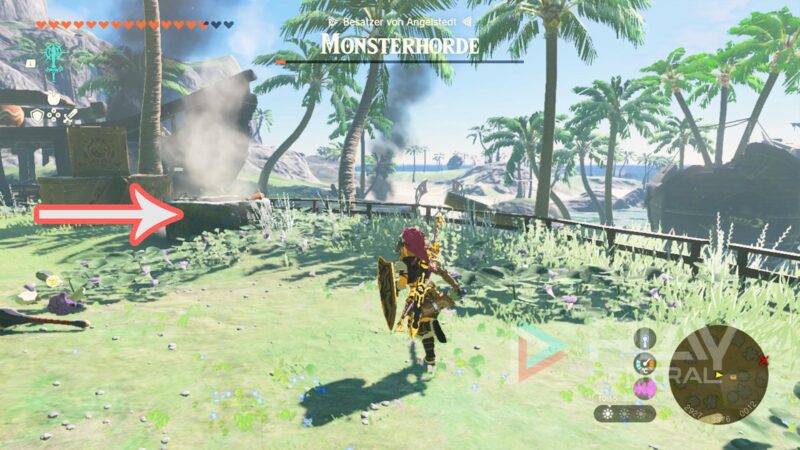 Wichtig: Wenn ihr so gut wie alle Monster in dem Dorf ausgeschaltet habt, müsst ihr noch ein letztes Monster den Garaus machen. Der Bokblin versteckt sich im Brunnen von Angelstedt im Nordosten beim kaputten Schiff.