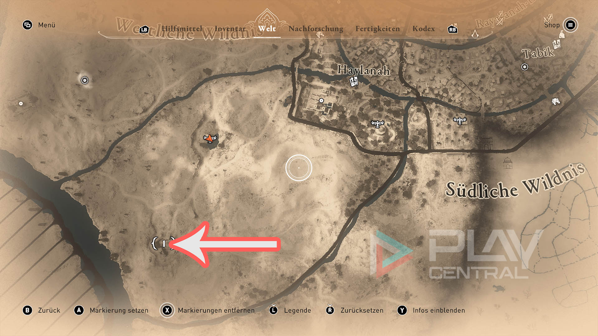 Wo ist die Ausgrabungsstätte? Die gesuchte Ausgrabungsstelle liegt ganz im Südwesten der Wildnis. Spawnt beim Aussichtspunkt Oase in der westlichen Wildnis und reitet dann gen Süden.