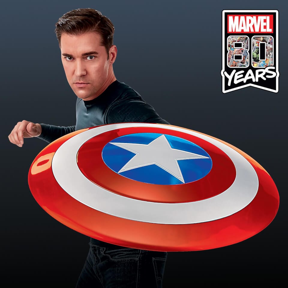 Zur Feier des Seriendebüts und eigentlich mehr zum 80. Jubiläum von Marvel Comics produziert Disney nämlich gemeinsam mit Hasbro eine lebensechte Replika zum Schild von Captain America.