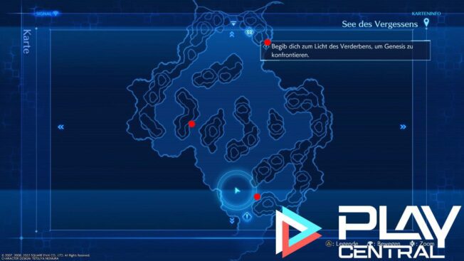 Sobald ihr die vier Göttinnen-Materia eingesammelt habt, könnt ihr euch auf den Weg ins nächste Areal machen, das direkt an den Abgrund der Entscheidung angrenzt. Folgt hierfür einfach nur dem Weg, der auf dem unteren Teil der Karte zu sehen ist. Diese weitere Höhle heißt der See des Vergessens und dort findet ihr die letzten noch verbleibenden Sammelobjekte entdecken könnt.