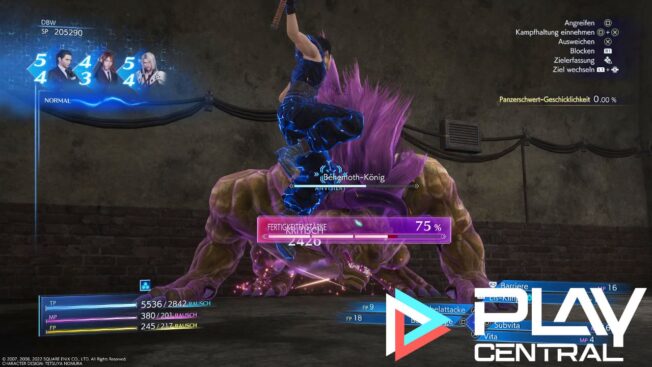 Selbst wenn sich Zack bereits auf einem ziemlich hohen Level befinden sollte, wird es schwierig, dem Bossgegner mehr Lebenspunkte abzuziehen als er regenerieren kann. Es ist kurz gesagt ein Kampf gegen Windmühlen. Doch auch hiergegen gibt es Mittel und Wege. Mit dem Angriff Bann-Klinge könnt ihr einen Buff beispielsweise aufheben und das betrifft glücklicherweise auch den Effekt von Regena.