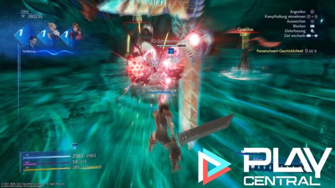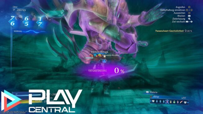 Das gewaltige Monster könnt ihr nicht direkt mit eurem Schwert attackieren, dafür jedoch mit euren Zaubern angreifen. Wir haben in diesem Kampf auf Höllen-Blitzga vertraut und dieser Zauber richtet großen Schaden beim Bossgegner an. Mit eurem Schwert solltet ihr euch auf das Materia-Schwert des Genesis-Avatars konzentrieren. Das ist allerdings leichter gesagt als getan.
