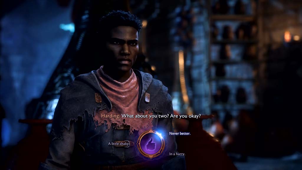 Im Laufe des Gameplays begegnen den Helden diverse Ungetüme und weitere Gefährten wie Lace Harding. Und eines fällt sofort auf: Wir lernen das für Bioware typische Dialogsystem kennen. Stellt euch schon mal auf folgenreiche Entscheidungen ein! Eure Mitstreiter reagieren auf eure Dialogauswahl.