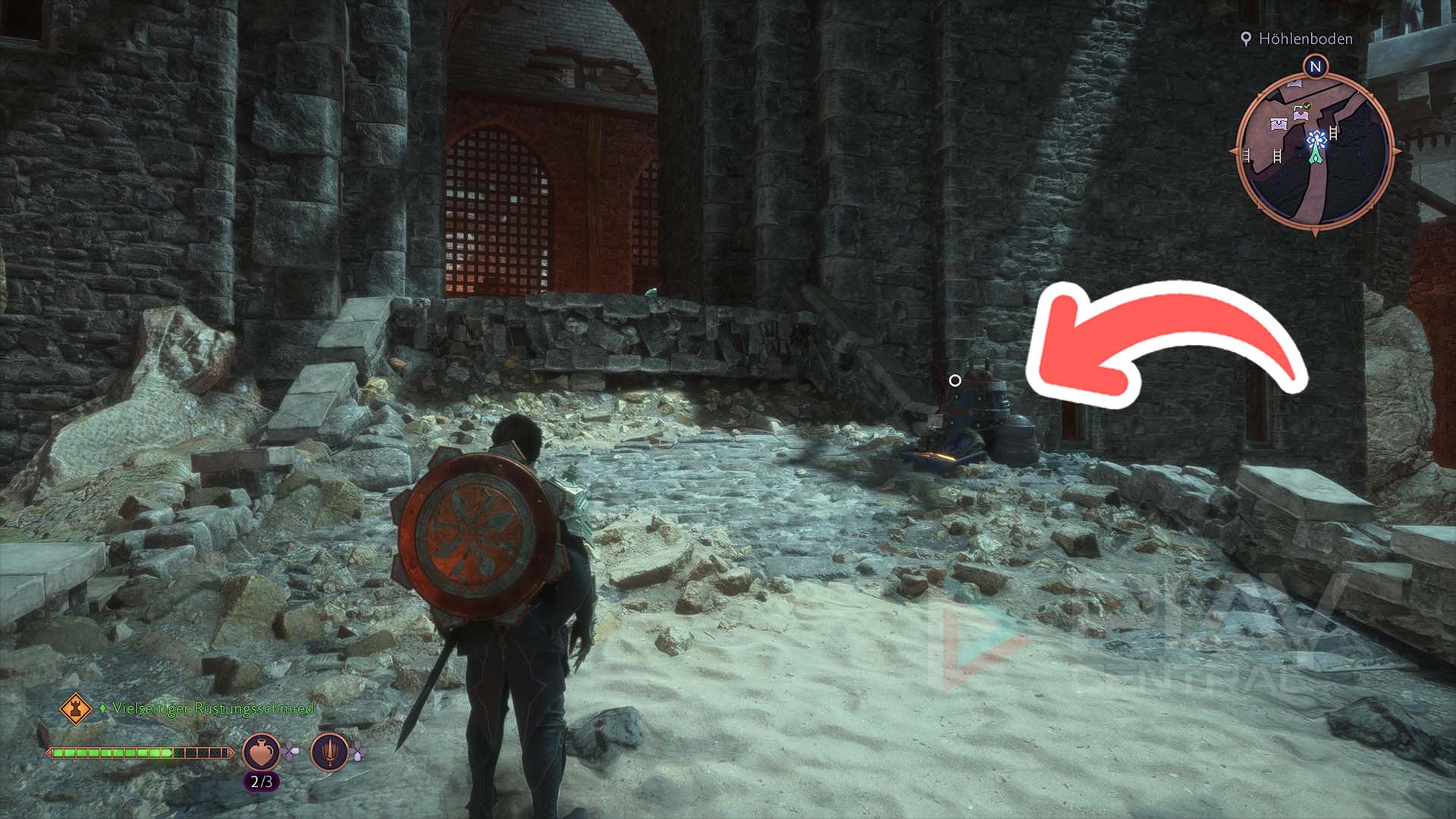 Den letzten Hinweis findest du, wenn du das innere Gebiet rund um die Festung verlässt (gen Westen) und zurück zum Höhlenboden läufst.