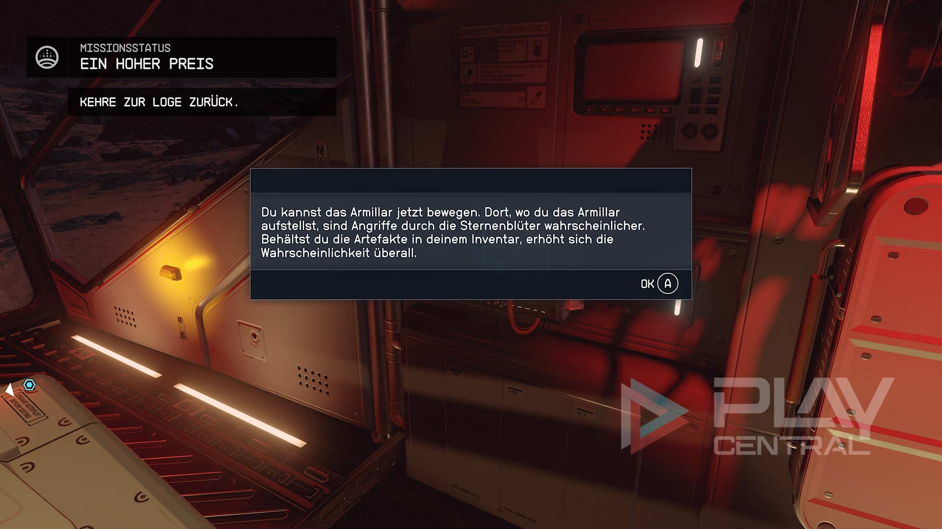- Option 3: Verbaut ihr das Armillar gar nicht, sondern behaltet es in eurem Inventar, könnt ihr sowohl im Weltall als auch bei der Erkundung von Planeten angegriffen werden.