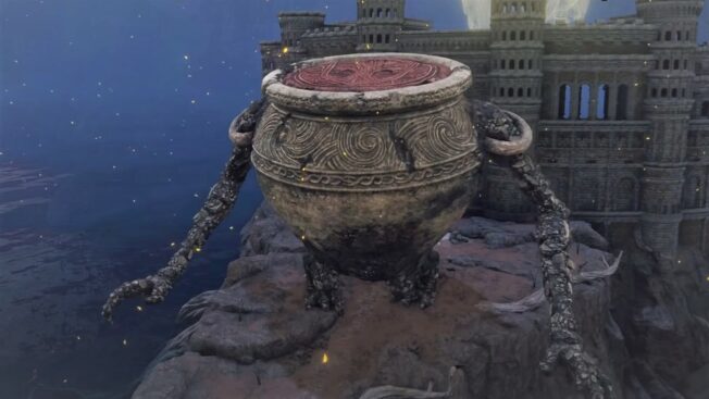 So kommt es, dass auch das 34 Meter große Gefäß vor der noch unbetretbaren Arena in Caelid aufstehen und angreifen kann, obwohl das vom Spiel so gar nicht beabsichtigt ist. Allerdings kommt es dabei nicht zu einem Kampf, denn der NPC verfügt über keine Hitboxen.