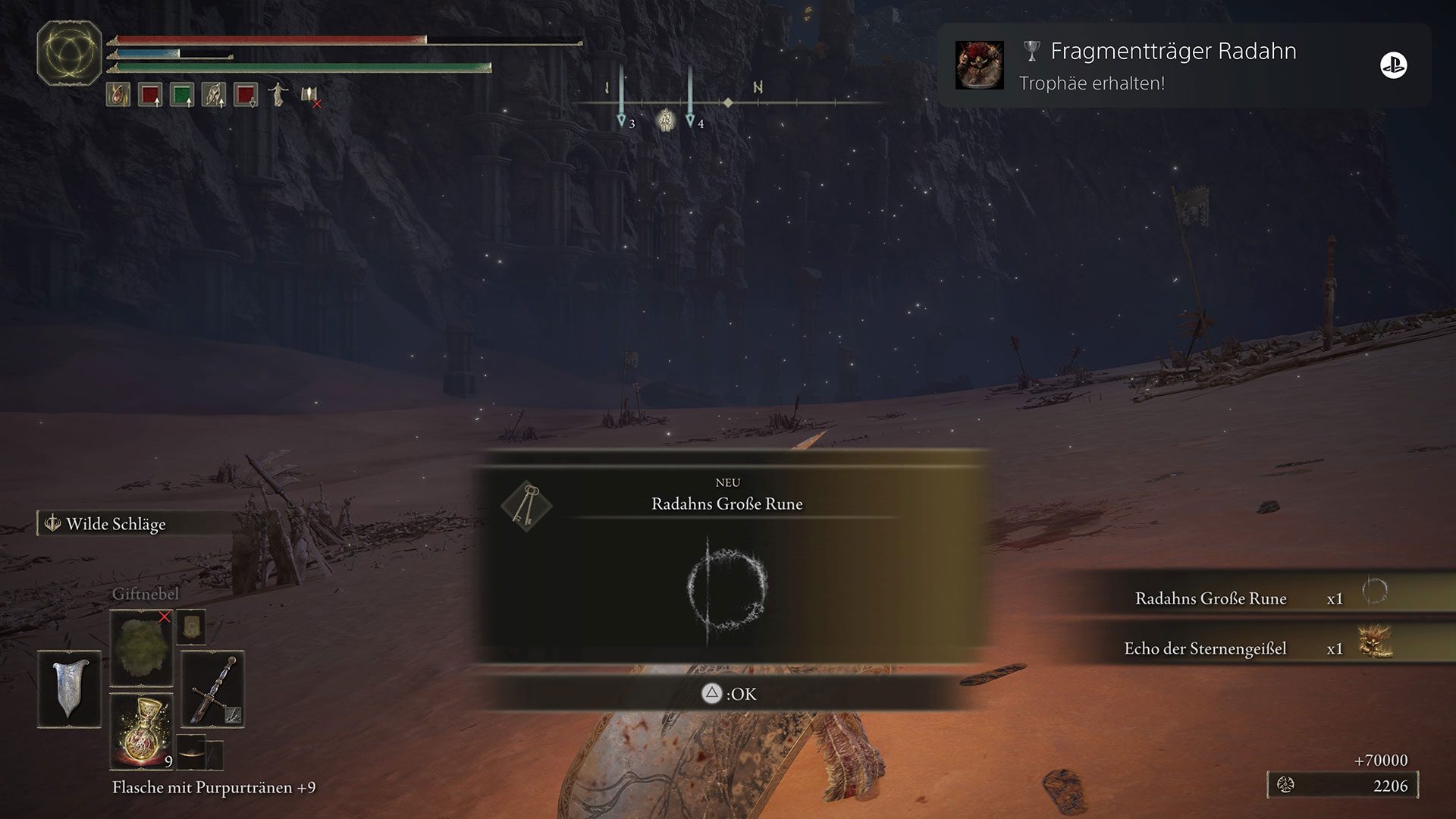 - Radahns Große Rune: Erhöht maximale Gesundheit, Mana und Ausdauer
