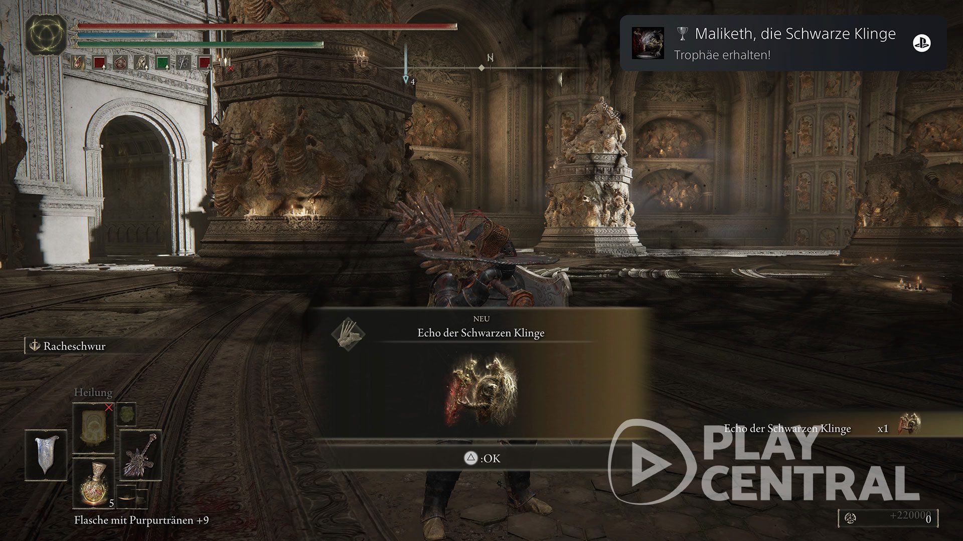 Als Belohnung für euren Sieg gegen Malekith in „Elden Ring“ erhaltet ihr ordentliche 220.000 Runen und das Echo der Schwarzen Klinge.