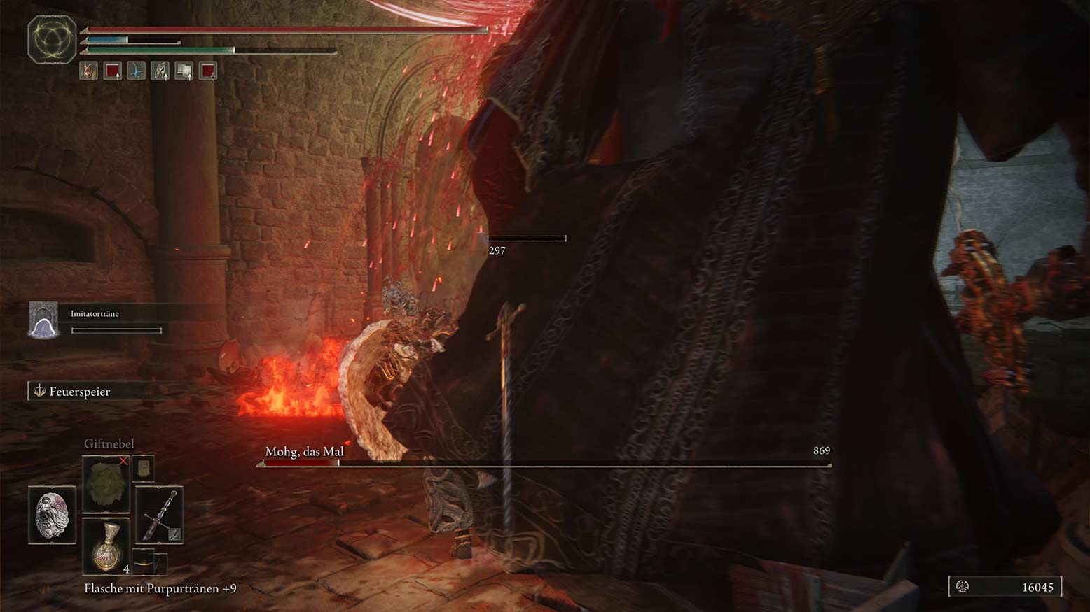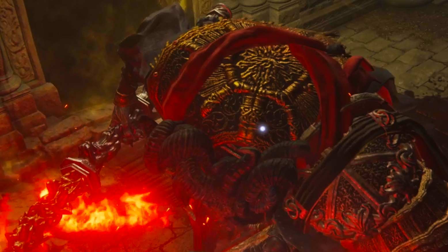 Mohg, das Mal nutzt seinen Dreizack und Feuer