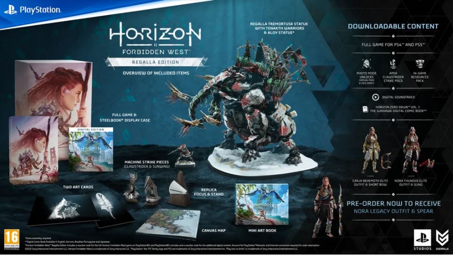 Das ultimative Paket für Horizon-Fans, die Regalla Edition, kostet 299,99 Euro und beinhaltet neben der PS4- und PS5-Version außerdem folgende Inhalte:
