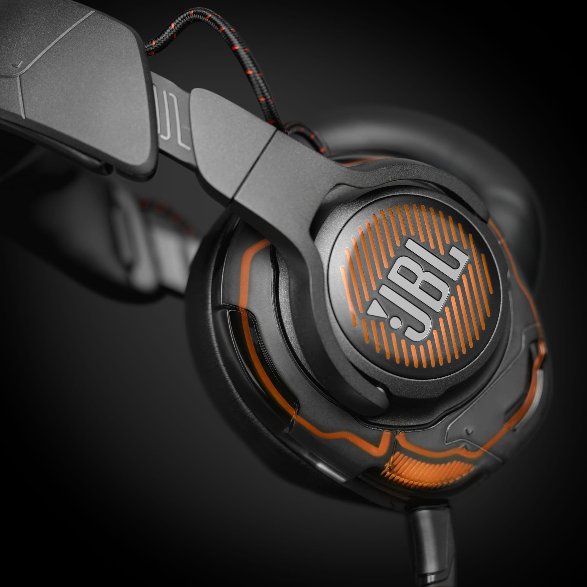 Klanglich wird absolute Audio-Präzision mit JBL QuantumSurround und DTS Headphone:X v2.0 aufgeboten und die die bewährten 50mm Dynamiktreiber erfreuen mit einem ausgewogenen Klangbild beim Zocken, aber auch beim entspannten Musikhören, eure Ohren. Und wenn wir schon bei den Ohren sind: Der hohe Tragekomfort wird durch die lederummantelten Memory Foam-Polster der Ohrmuscheln und des Kopfbands gewährleistet und das effektive Noise Cancelling-System sorgt für störungsfreien Klanggenuss, ohne nervige Hintergrundgeräusche wahrzunehmen.