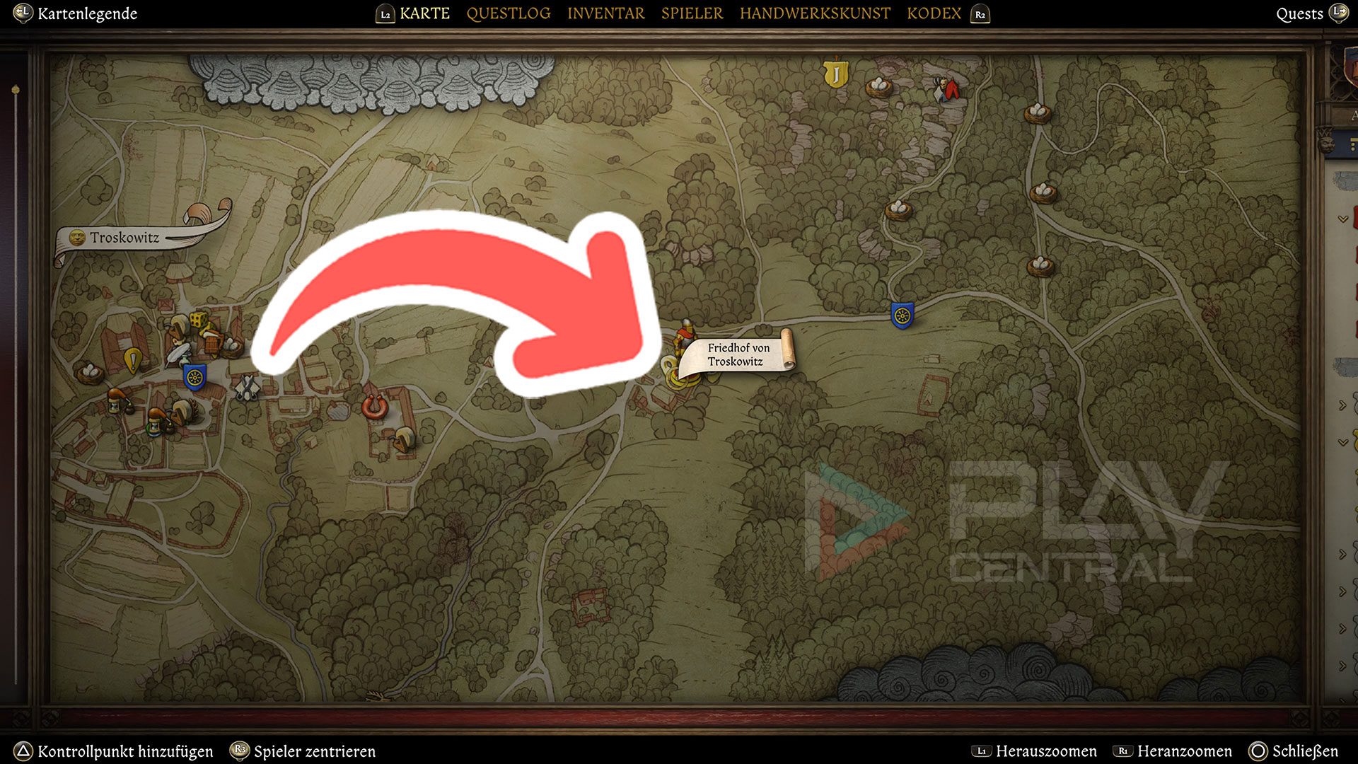 Hinweis: Sollte ihr zu diesem Moment über keine Schaufel verfügen, könnt ihr euch den Marsch auch sparen. Denn ohne das Werkzeug könnt ihr das Grab nicht ausheben.