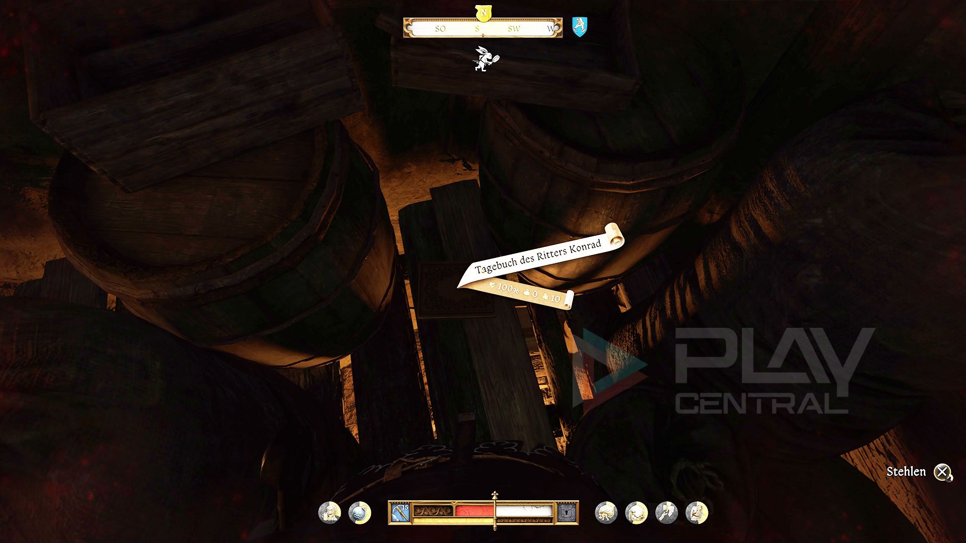 Schaut ihr euch in der Hütte aber genauer um, werdet ihr im Obergeschoss drei Mehlsäcke stehen sehen. Räumt diese zur Seite, um dahinter das Tagebuch von Konrad von Prag zu finden. Besonders interessant ist hier ein Eintrag ganz am Ende.