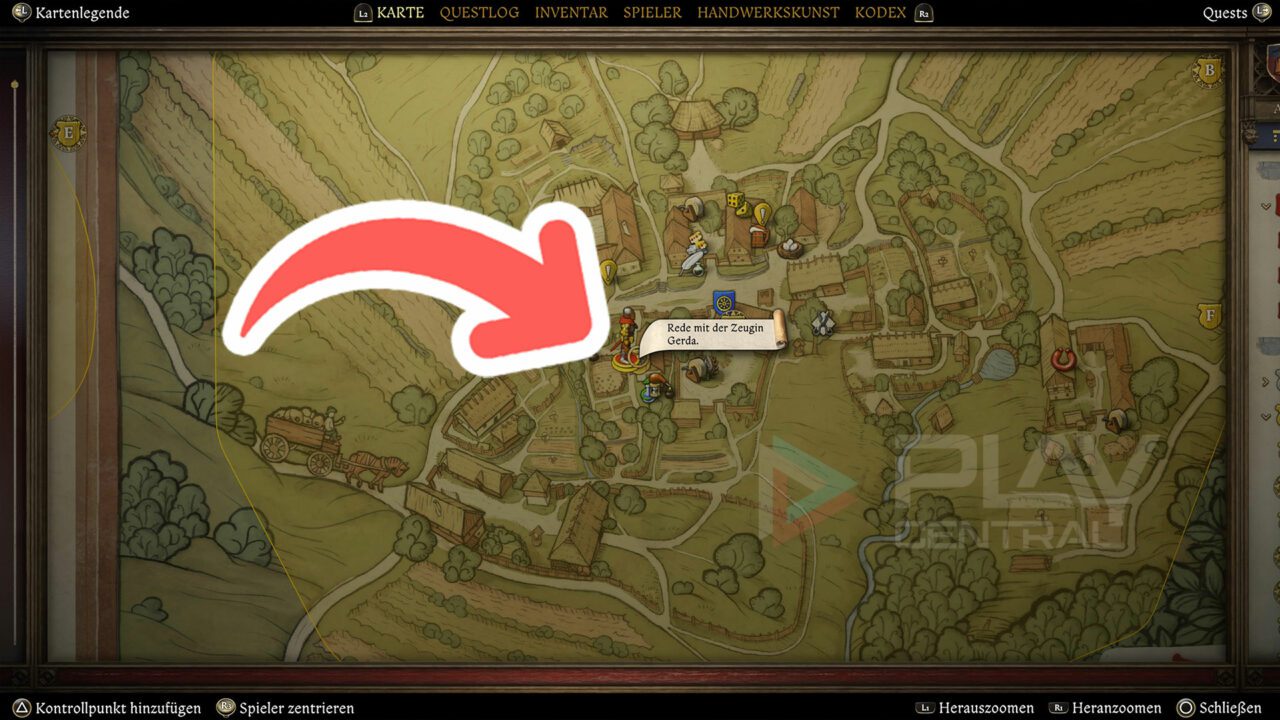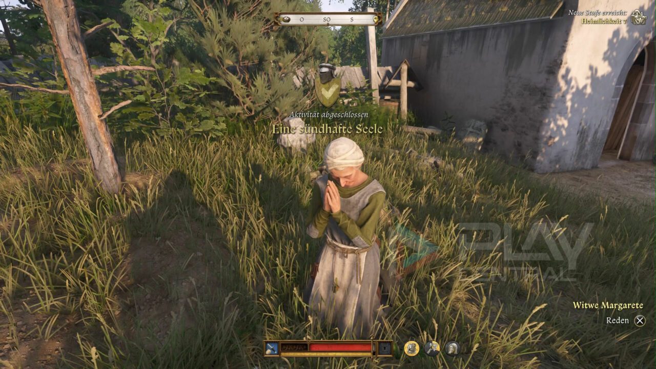 - Sprecht mit Bara, wodurch ihr stellvertretend mit den Dorfbewohnern gesprochen habt und auch hinter diesem Punkt einen Haken machen könnt. Sie steht meist in der Nähe vom Rathaus oder des Prangers (den kennt ihr ja bereits bestens!) und bettelt.