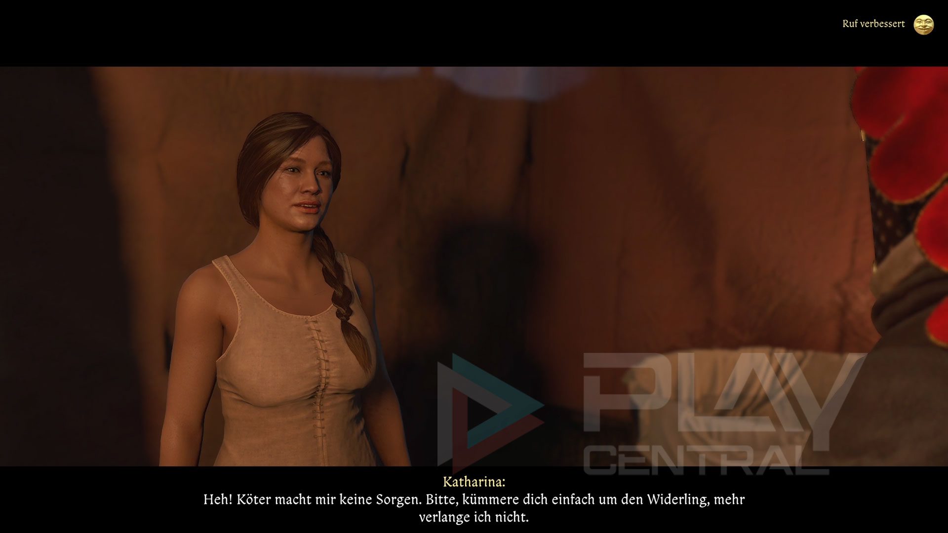 Aber auch mit Köters Hilfe findet ihr schnell das Zelt des Kumanen und außerdem den zweiten Schuh. Sobald ihr zurück seid, trefft ihr direkt vor dem Eingang auf den Spanner, der Katharina beim Schlafen beobachtet. Macht ihm klar, dass sein Verhalten ab sofort ein Ende hat. Erzählt Katharina im Anschluss, dass sie der Mann nicht mehr belästigen wird, womit der Auftrag erfüllt ist.
