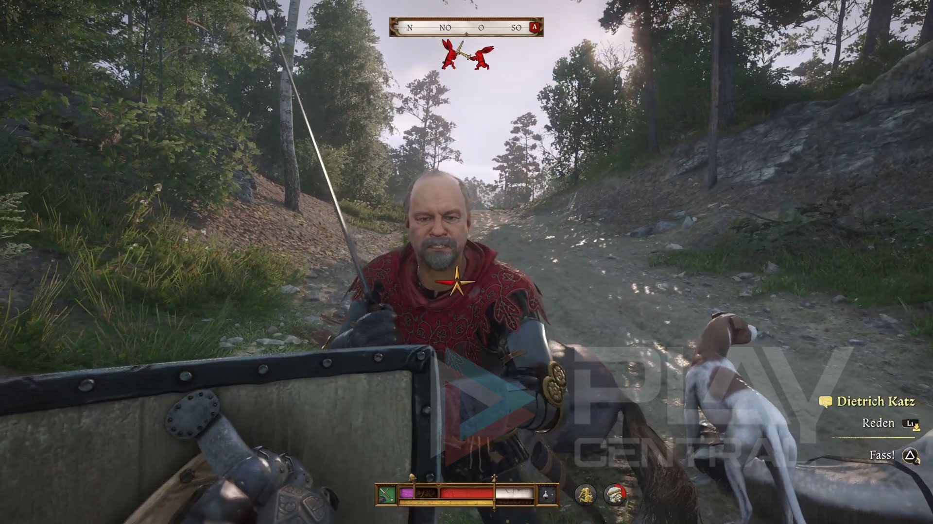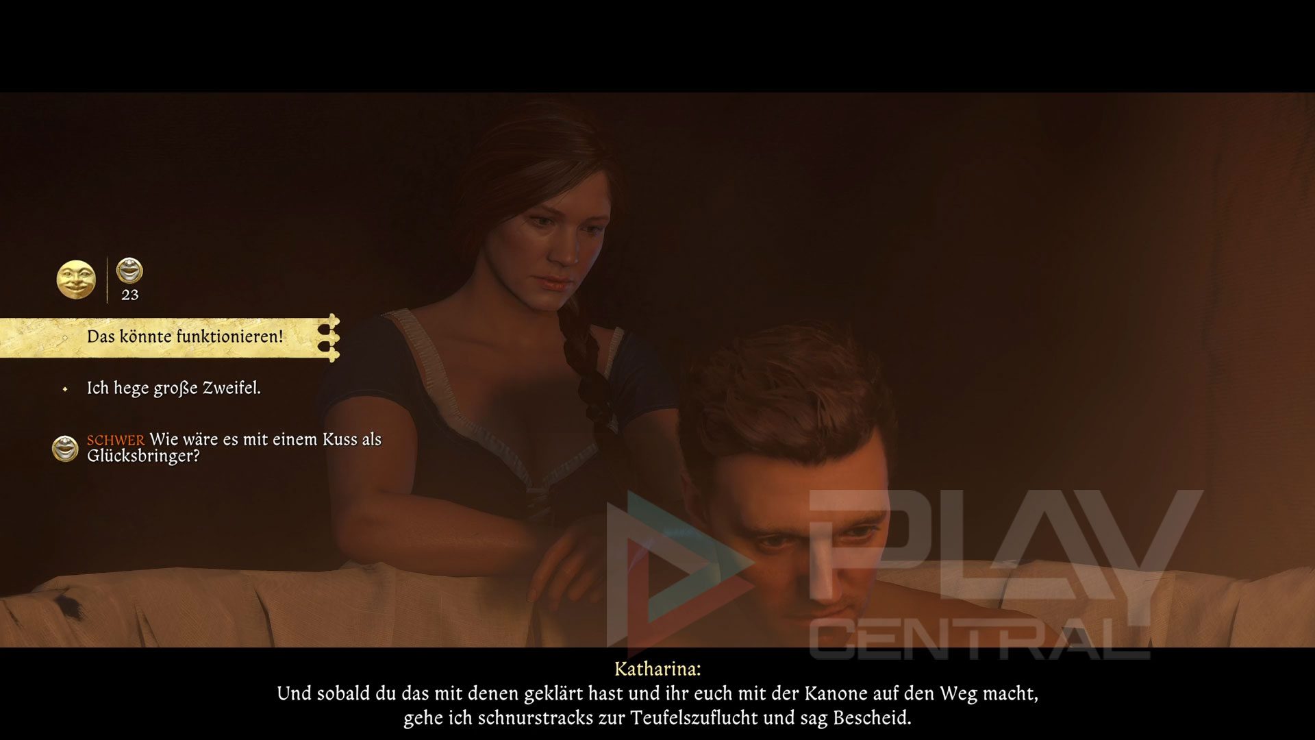 Zuvor müsst ihr jedoch Katharina treffen, die das feindliche Lager ausspioniert hat, um weitere Informationen zu erhalten.