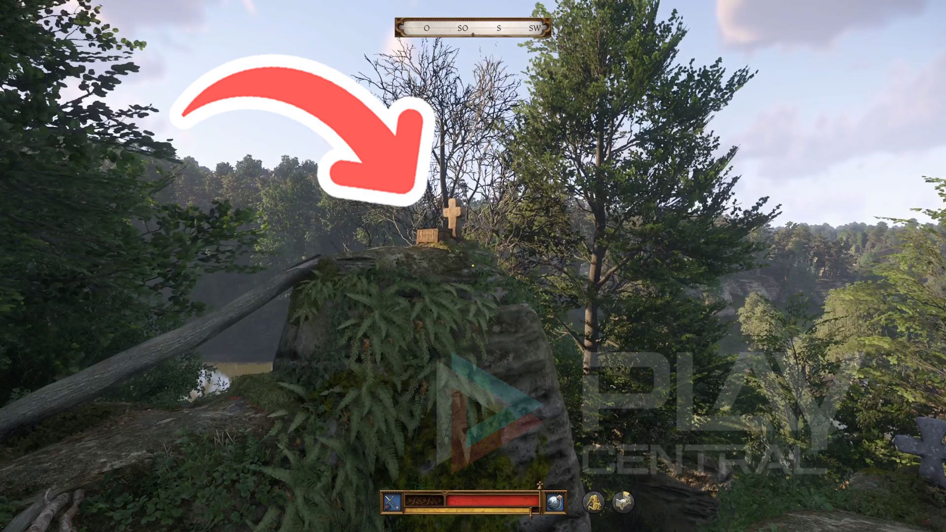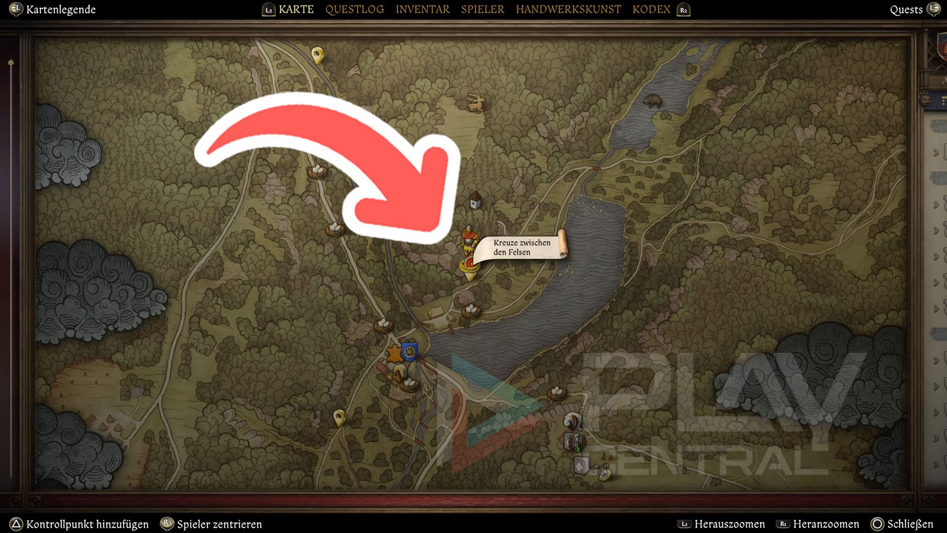 Brunswieks Karte II führt euch hoch hinauf auf die Felsen des nördlichen Sees und in der Nähe des kleinen Ortes Vidlak-Teich. Steigt ganz nach oben und haltet nach drei Kreuzen zwischen den Felsen Ausschau. Den höchsten Felsen erreicht ihr, indem ihr über einen Baumstamm balanciert. Vor dem Kreuz steht eine Truhe, in der ihr diese Items findet: