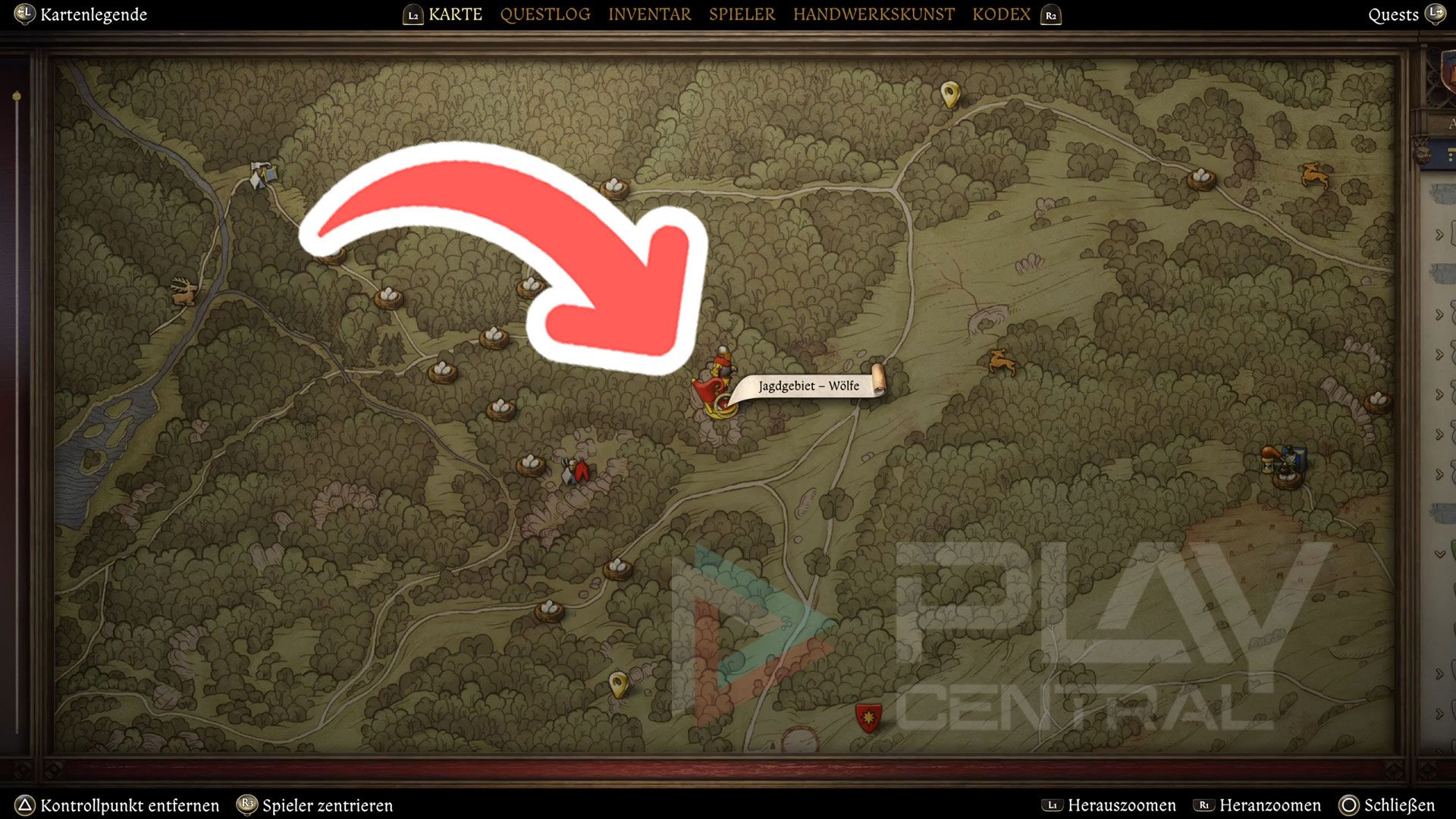 Brunswieks Karte der Jagdprüfung führt euch nördlich der Karte zu einem Jagdgebiet für Wölfe. Der Ort liegt weit im Norden von Tachau. Schaltet die aggressiven Wölfe aus und sucht neben der kleinen Höhle die zwei Bäume auf. Genau dazwischen liegt in einer Bodensenke ein Sack, indem ihr die folgenden Gegenstände findet: