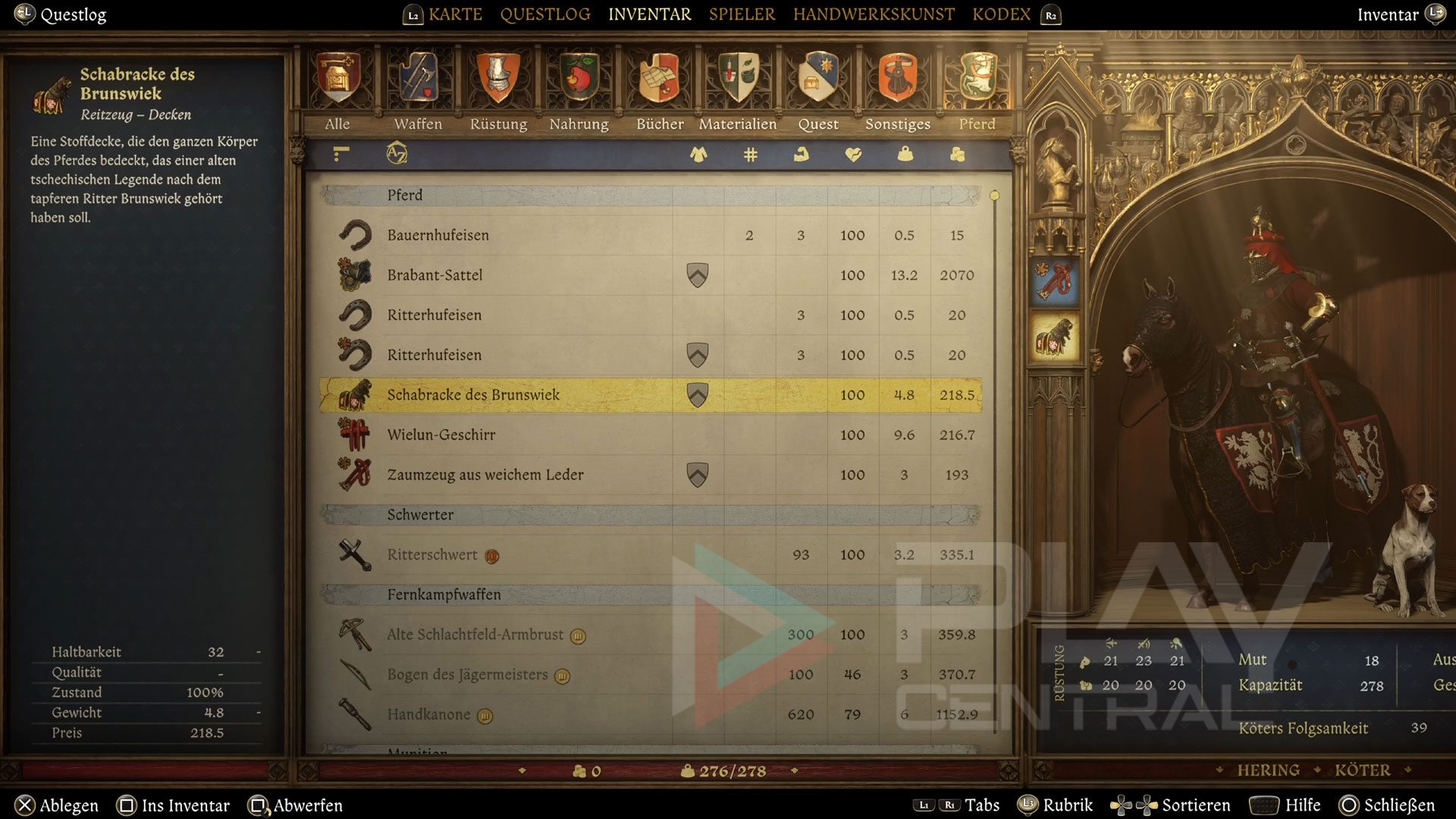 Sobald ihr alle Rüstungsteile gefunden habt, ist der Auftrag Das Löwenwappen erfolgreich abgeschlossen. Ihr könnt jetzt Heinrich sowie euer Pferd mit der Rüstung von Prinz Brunswiek ausstatten.