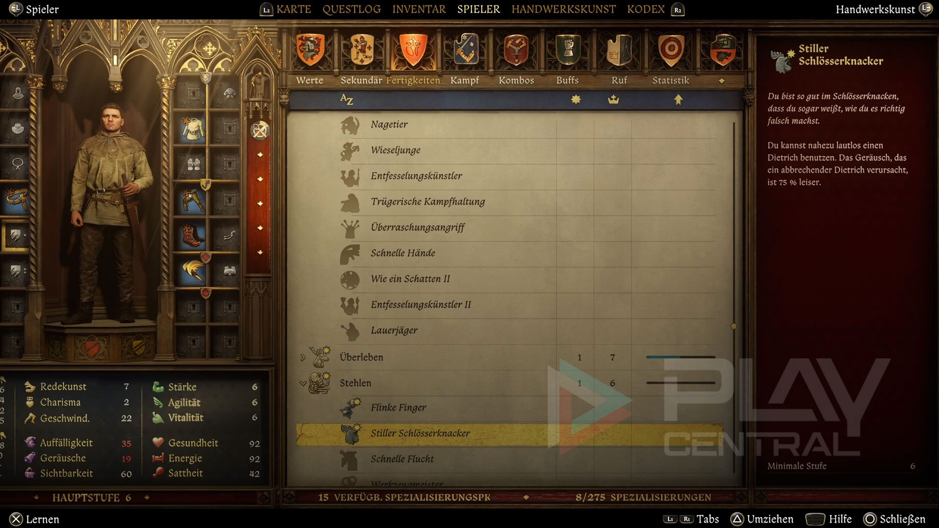 Zusätzlich gibt es unter der Fertigkeit Heimlichkeit einige weitere Spezialisierungen, die es für Schlossknacker deutlich einfacher machen.