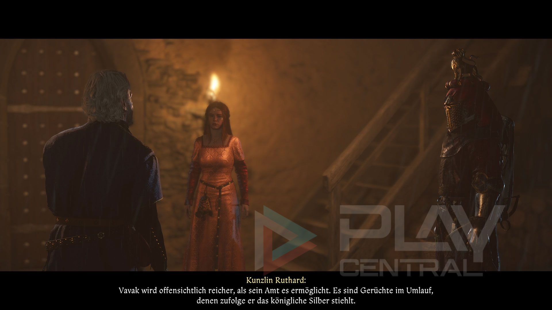 Nachdem ihr euch mit Vavaks Männern auseinandergesetzt habt, sprecht mit Kunzlin und Rosa. Ersterer ist in Sorge, da er nach dem Kampf das Blut der Männer des Königs an den Händen kleben hat. Doch die Situation könnte sich lösen lassen, indem man Vavak, der von Sigismund höchstpersönlich eingesetzt wurde, diskreditiert. Gerüchten nach zu urteilen stehle dieser königliches Silber. Na, ob da wohl etwas dran ist?