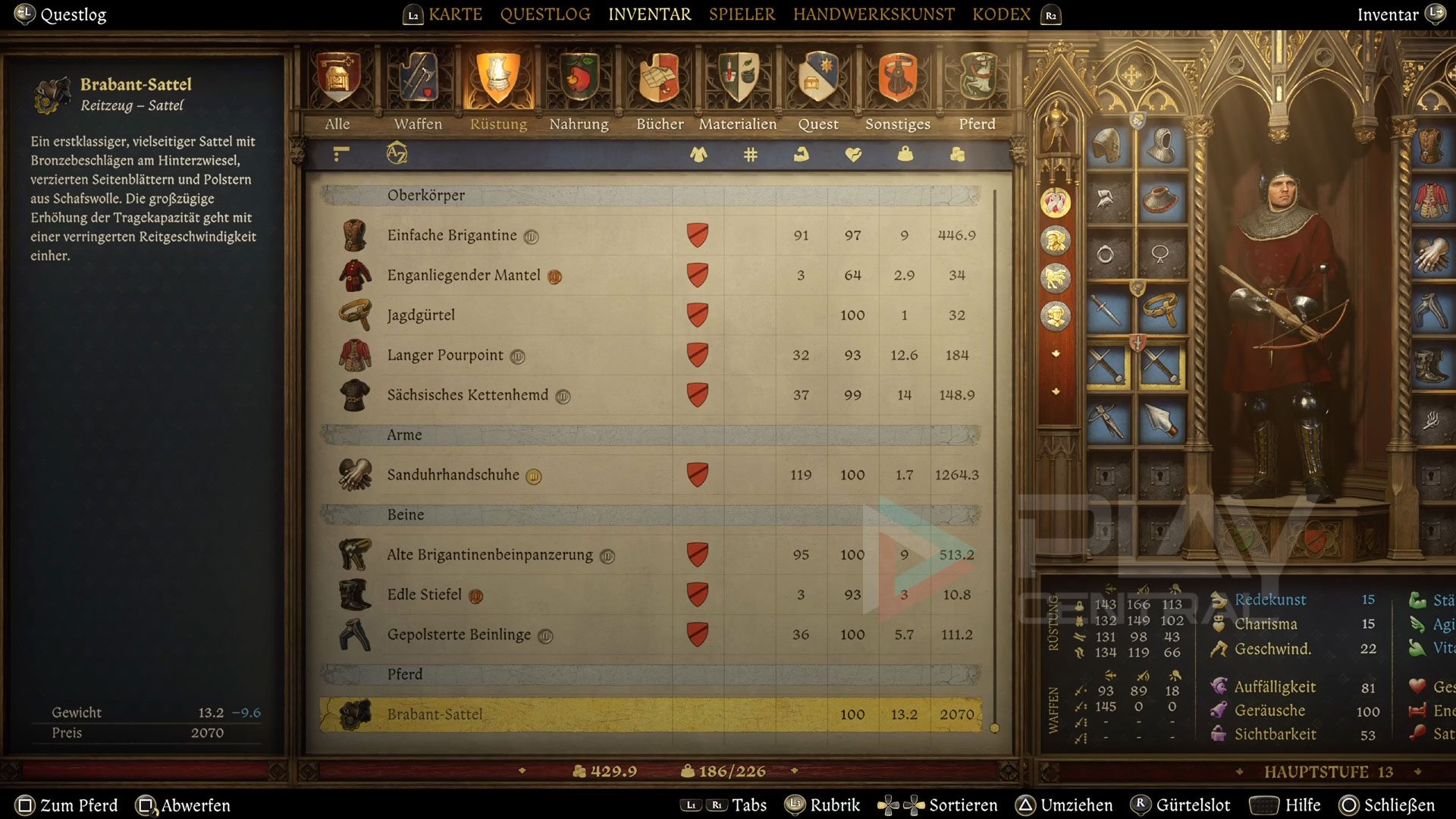 Sprecht nach dem Sieg mit Pelzel und ihr erhaltet den Brabant-Sattel, der fast zehn Kilogramm leichter als der Prager Sattel ist und einen Wert von 2.070 Groschen besitzt – kein schlechter Gewinn!