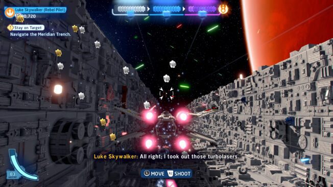 Viele Steinchen in Episode 4: Wenn es euer Ziel ist, möglichst schnell zum Steinchen-Millionär zu werden, dann solltet ihr mit Episode 4 starten. Das letzte Level „Augen auf Ziel“ ist eine Flugmission auf dem Todesstern. In den knapp fünf Minuten erhaltet ihr ohne Multiplikatoren um die 100.000 Steinchen. Macht ihr das Level also mehrfach hintereinander, dann werdet ihr euch schnell den ersten Bonus kaufen können.