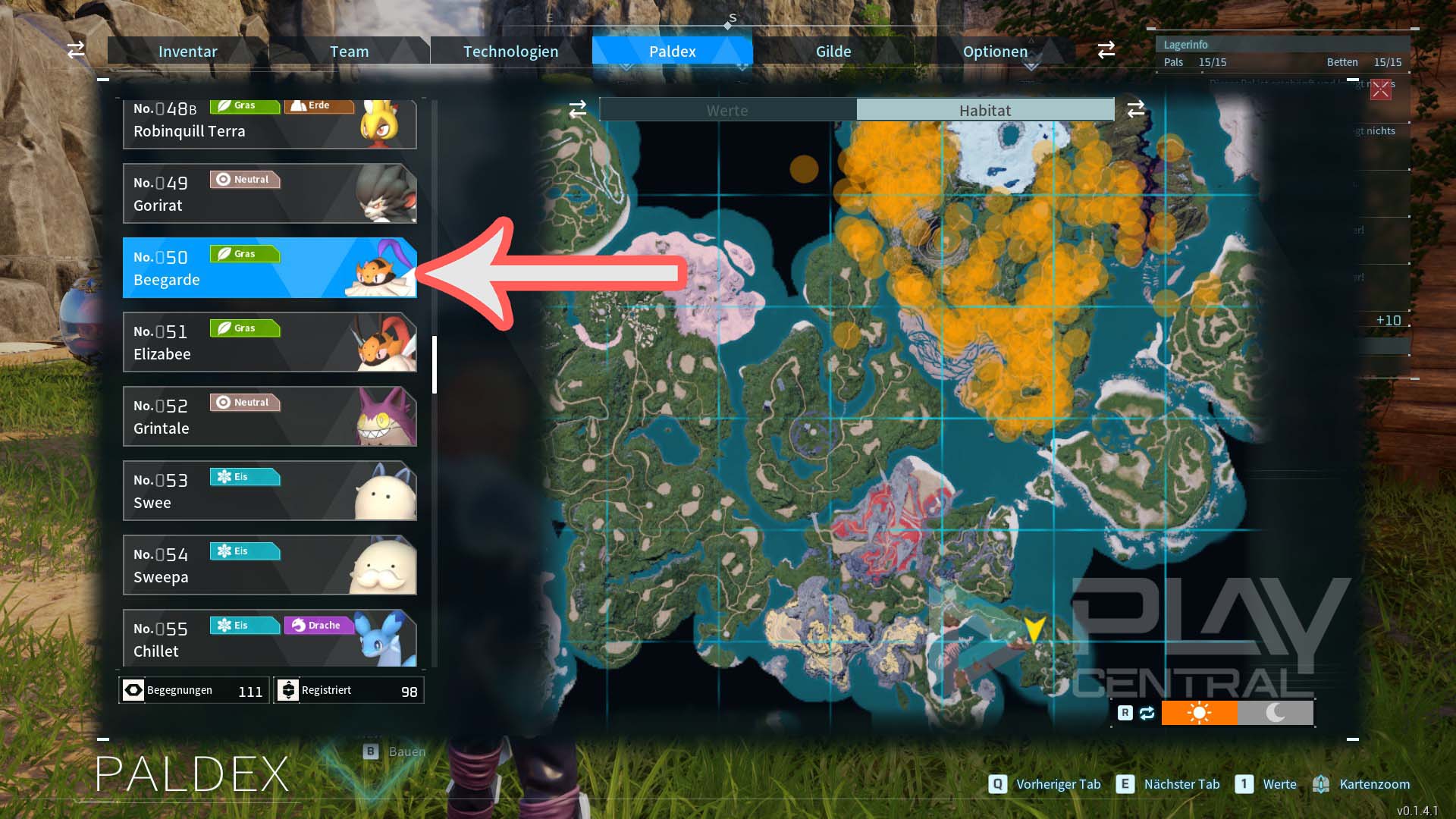 Nun benötigen wir ein Pal, das Honig herstellen kann. Dafür eignet sich als einziges Pal die Beegarde. Wir zeigen euch auf diesem Bild, wo ihr die Beegarde findet.