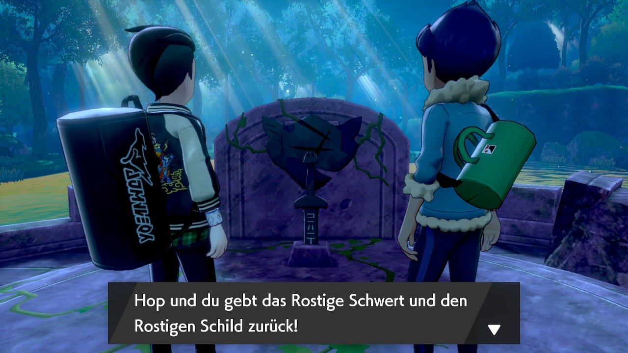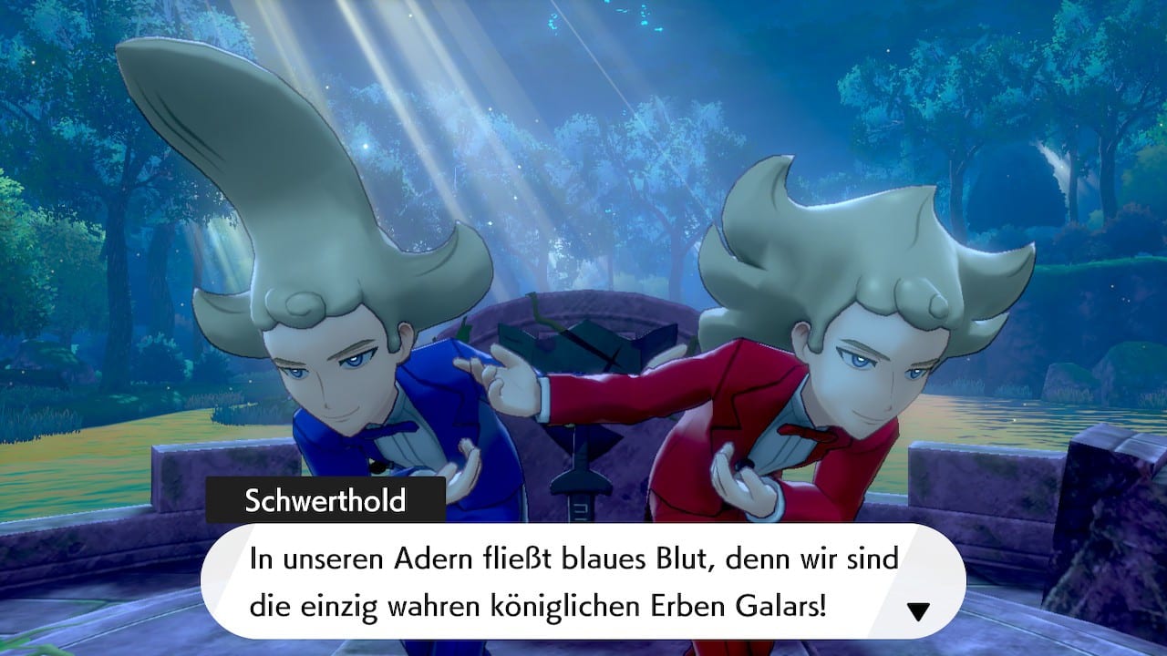 Ihr werdet von zwei mysteriösen Gesellen überrascht, die sich als Nachkommen der einstigen Helden vorstellen. Sie können es nicht glauben, dass der Held, der Galar einst beschützte, in Wahrheit zwei Pokémon sind (nämlich Zacian und Zamazenta).