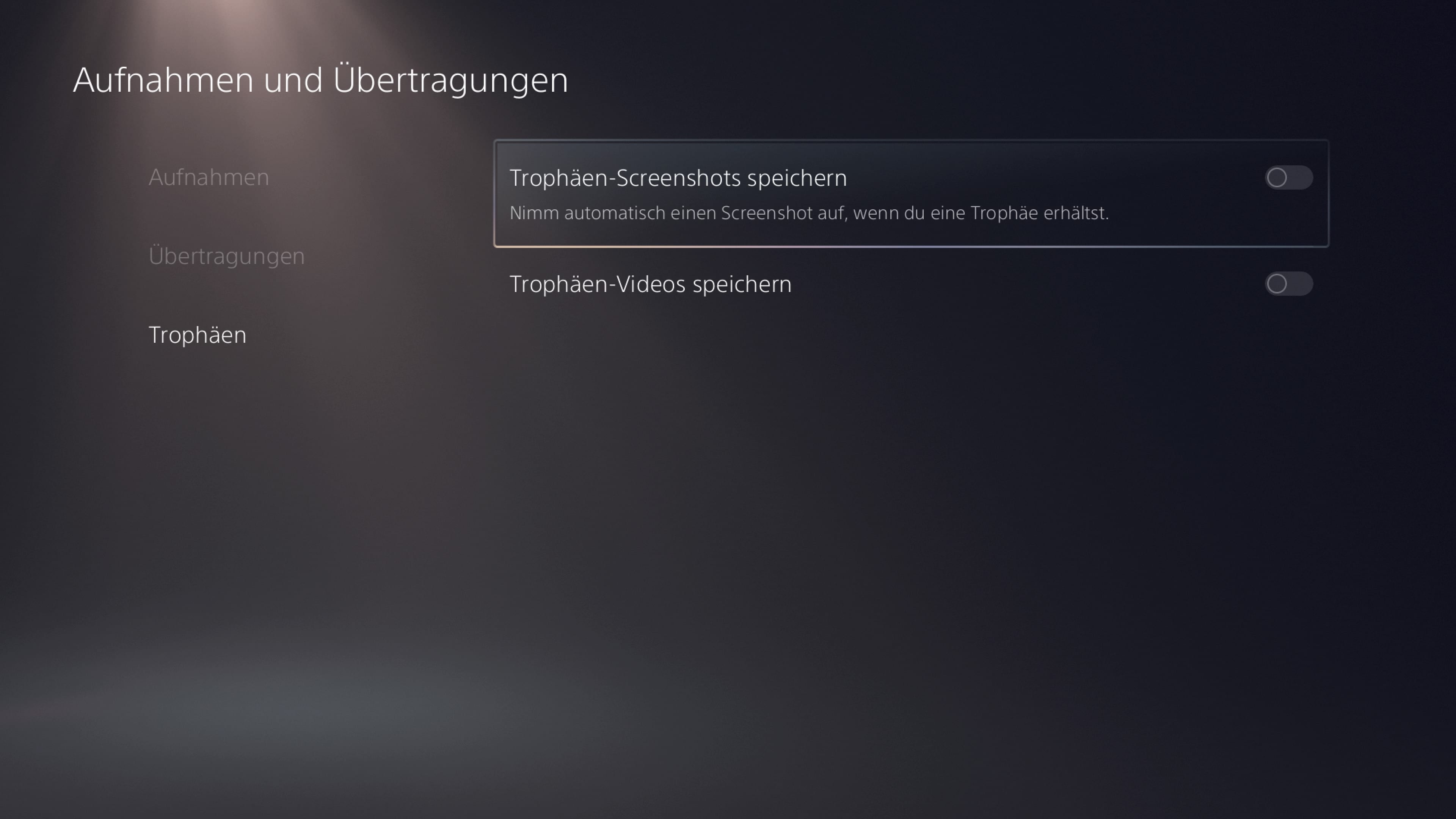 Um die Funktion zu deaktivieren, besucht ihr einfach die Einstellungen eurer PlayStation 5 und wählt den untersten Menüpunkt Aufnahmen und Übertragungen. Dort könnt ihr unter Trophäen die Trophäen-Screenshots als auch die Videos unabhängig voneinander deaktivieren oder aktivieren.