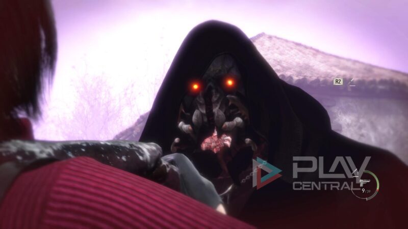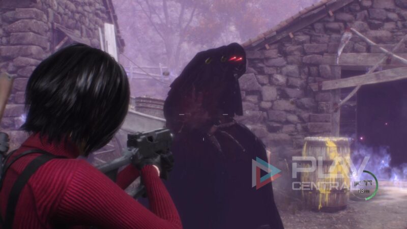 Wenn wir mit Ada in Resident Evil 4: Separate Ways ins sagenumwobene Dorf kommen, gibt es eine Begegnung der etwas anderen Art. Ein mysteriöses und äußerst bösartiges Phantommonster, die sogenannte Kreatur in der Robe, stellt sich uns in den Weg.