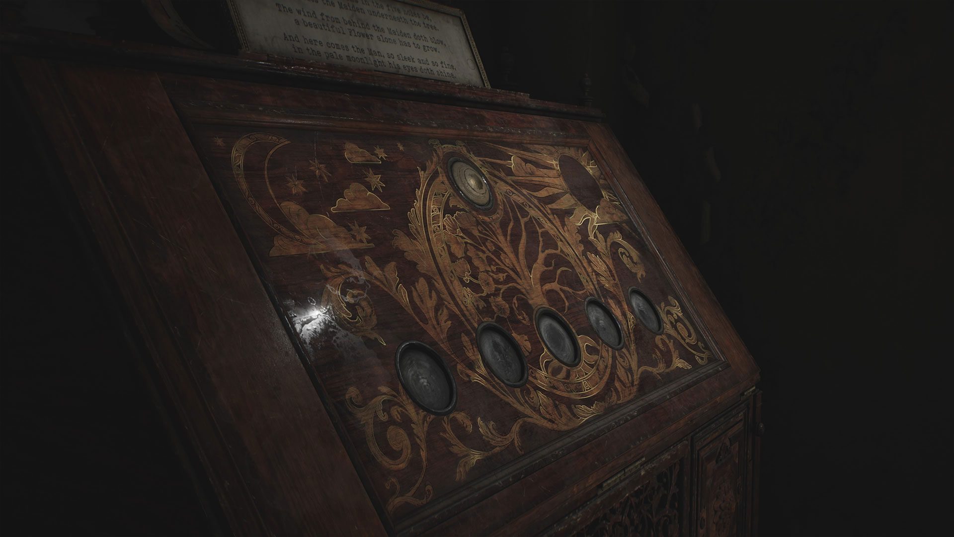 Um das Rätsel zu lösen, schauen wir uns erst einmal den ersten Hinweis oberhalb des Kabinetts an: