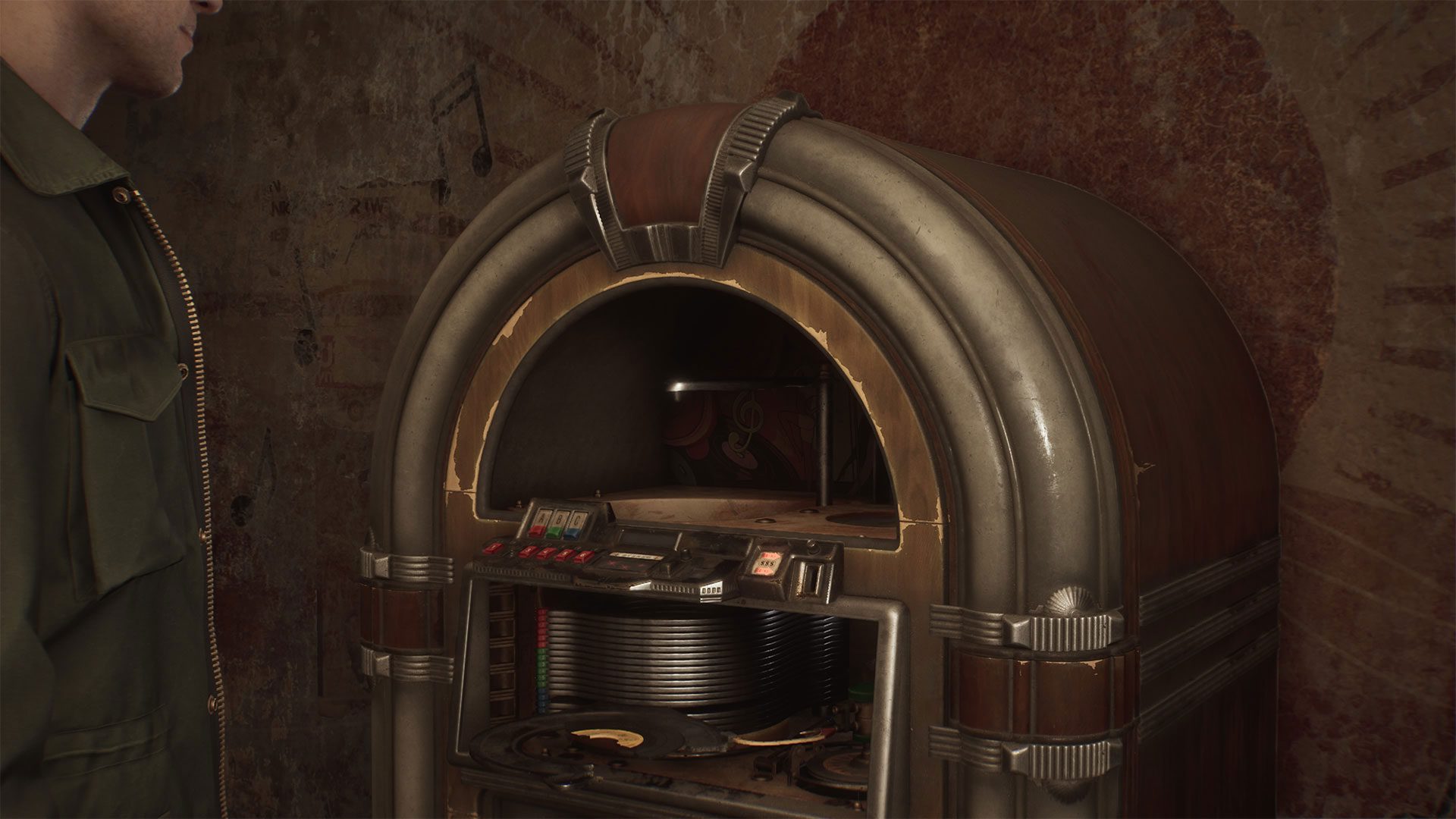 Betrete die Bar über den Haupteingang und suche im rechten Bereich vor dem Tresen die Jukebox auf, die zunächst noch mit einem Tuch verdeckt ist. Der Grund dafür? Die Jukebox ist defekt und will von dir erst einmal repariert werden!