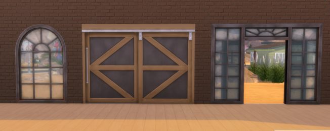 Im Baumodus gibt es insgesamt drei neue Objekte: 2 neue Türen und ein neues Fenster. Zusätzliche Bodenbeläge oder Tapeten sind nicht dabei. Die obligatorische Ziegelsteinwand ist aber bereits im Basisspiel von „Sims 4“ enthalten.