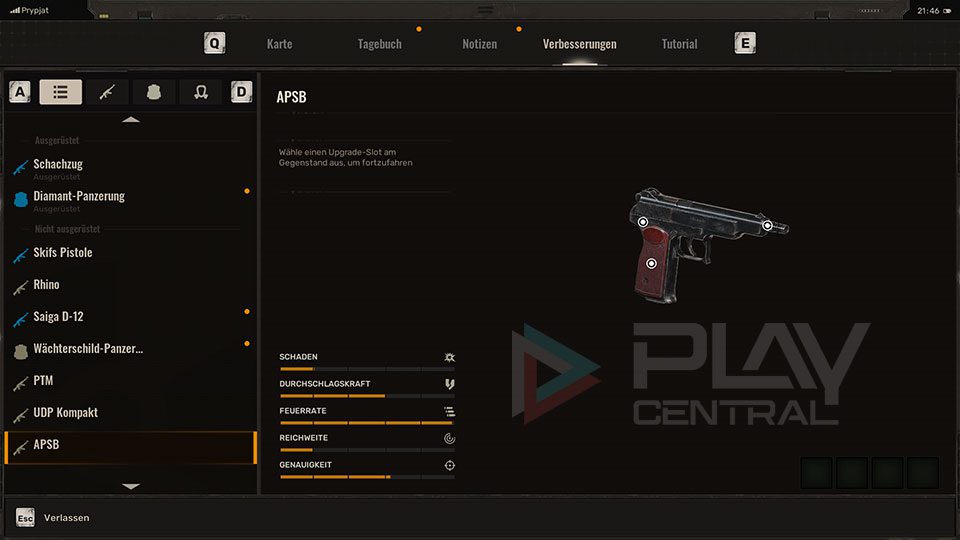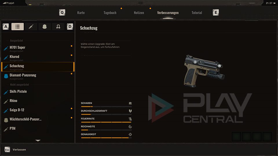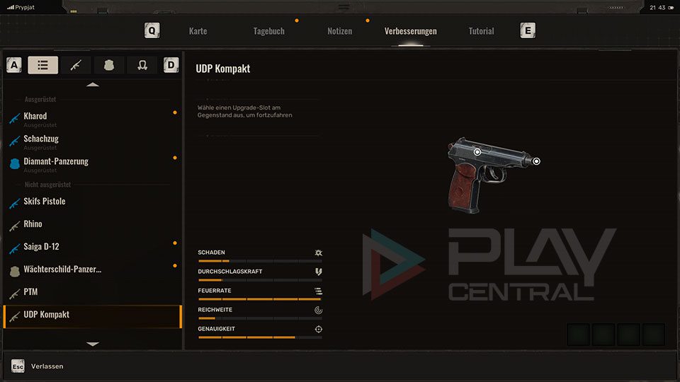 Pistolen können in Stalker 2 als Ersatz- oder Alternativwaffe dienen. Sie lassen sich schnell über das Ausrüstungsrad ausrüsten, wenn euch bei euren Primär- und Sekundärwaffen mal die Munition ausgeht. Außerdem könnt ihr jederzeit schnell zu einer Pistole wechseln, um eine Bedrohung aus nächster Nähe auszuschalten, weil das Wechseln der Waffe schneller geht als das Nachladen eurer anderen Waffen.