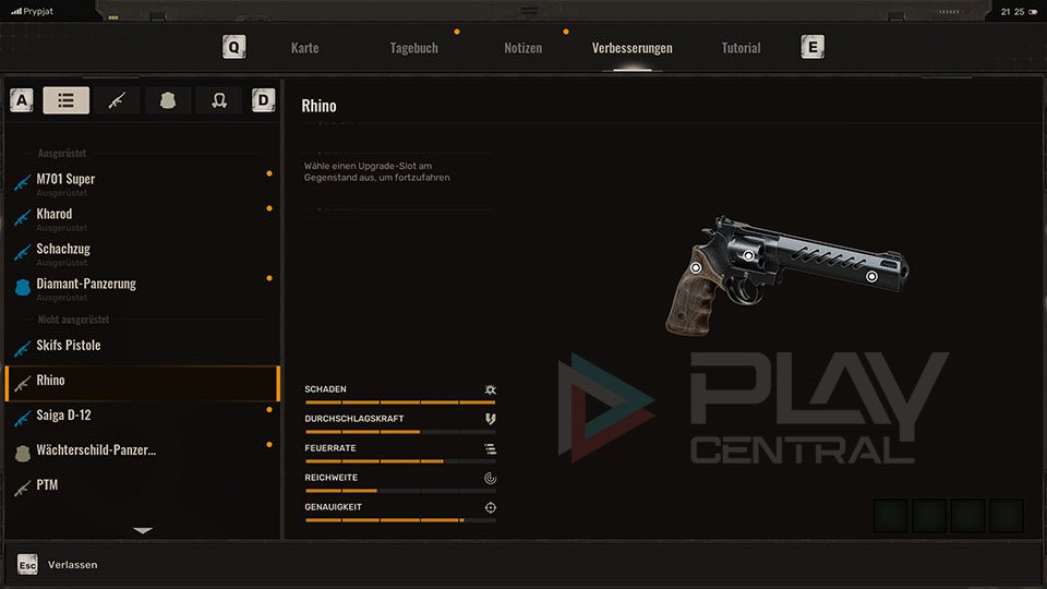 Der Rhino ist die insgesamt beste Pistole in Stalker 2: Heart of Chornobyl, da er den höchsten Schaden, die höchste Durchschlagskraft und die höchste Genauigkeit unter allen anderen Pistolen aufweist. Im Gegensatz zu anderen Pistolen könnt ihr den Rhino als Primär- und Sekundärwaffe verwenden und gepanzerte Feinde und Mutanten mit Leichtigkeit ausschalten.