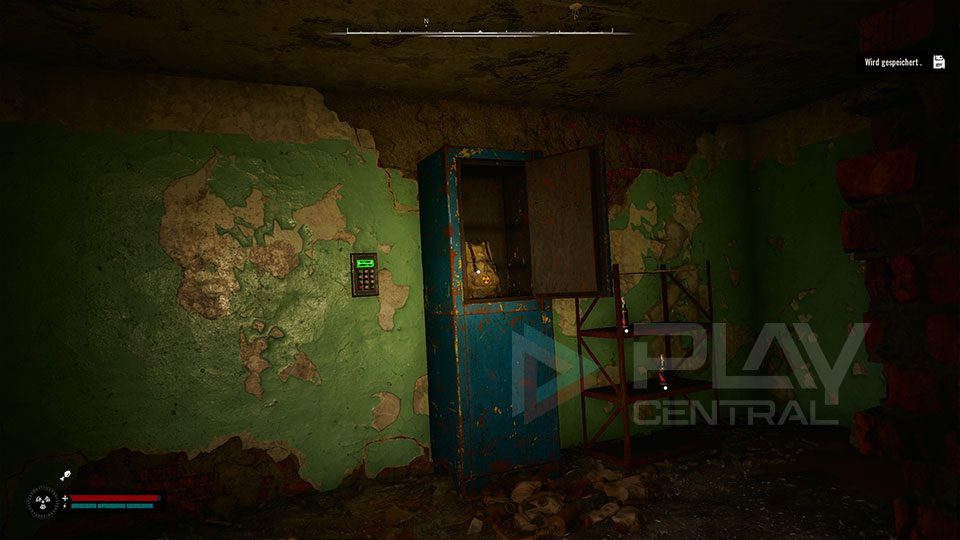 - Fundort: Südlicher Kühlturm, auf einem umgestürzten Metallmast. Kleiner Safe über einem roten Container.