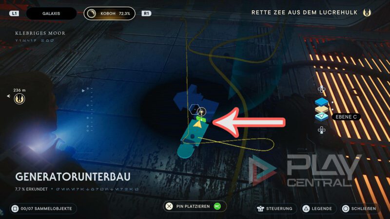 Ihr benötigt also die Hauptmission: Rette Zee aus dem Lucrehulk. Hier müsst ihr in das Gebiet Klebriges Moor aufbrechen und Zee retten, bevor die Schurken ihren Datenkern zerstören können, um an ihre Informationen zu gelangen.