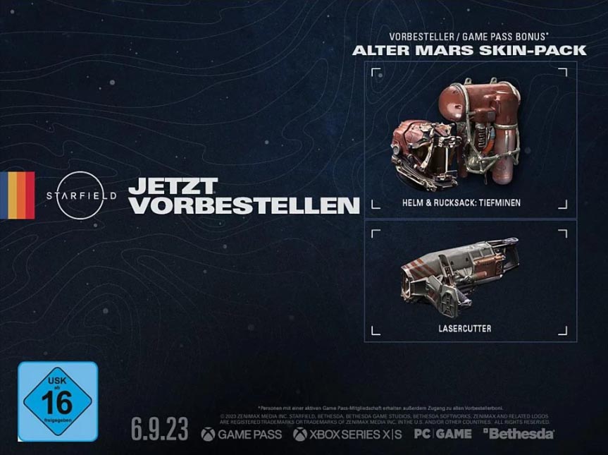 Diese Version von „Starfield“ enthält alle Vorbesteller-Boni. Ihr könnt die Constellation-Edition bei den nachfolgenden Onlineshops vorbestellen.