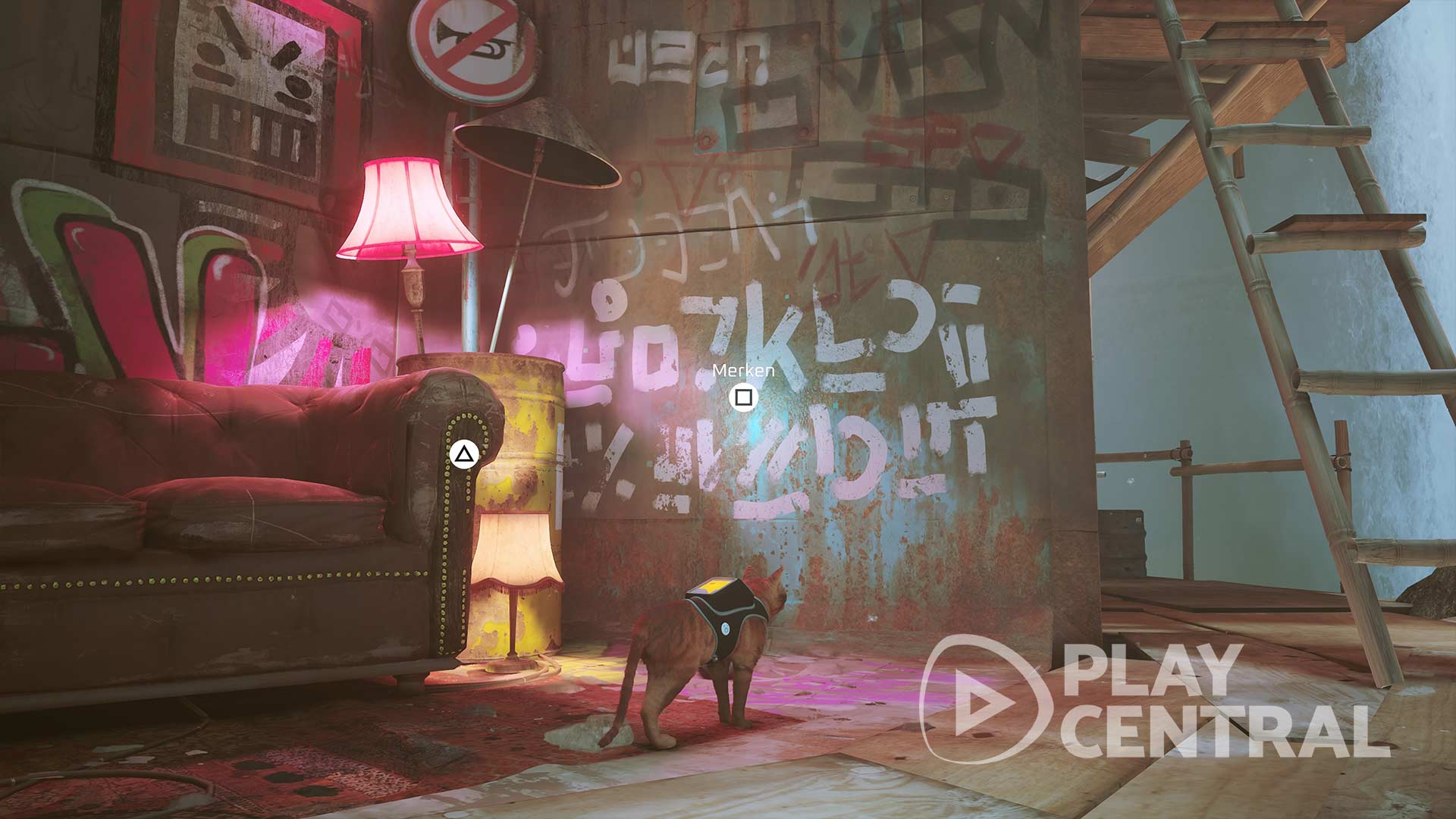 Die Slums (5/27): Um die fünfte Erinnerung freizuschalten, müsst ihr die Wohnung von Momo aufsuchen. Diese befindet sich oberhalb der beiden Roboter, die sich Farbeimer zuwerfen. Klettert an den Lüftungen der Wand unter dem Balkon nach oben und springt durch das offene Fenster. Lauft durch den Perlenvorhang und seht euch das Poster mit der Aufschrift back home an.