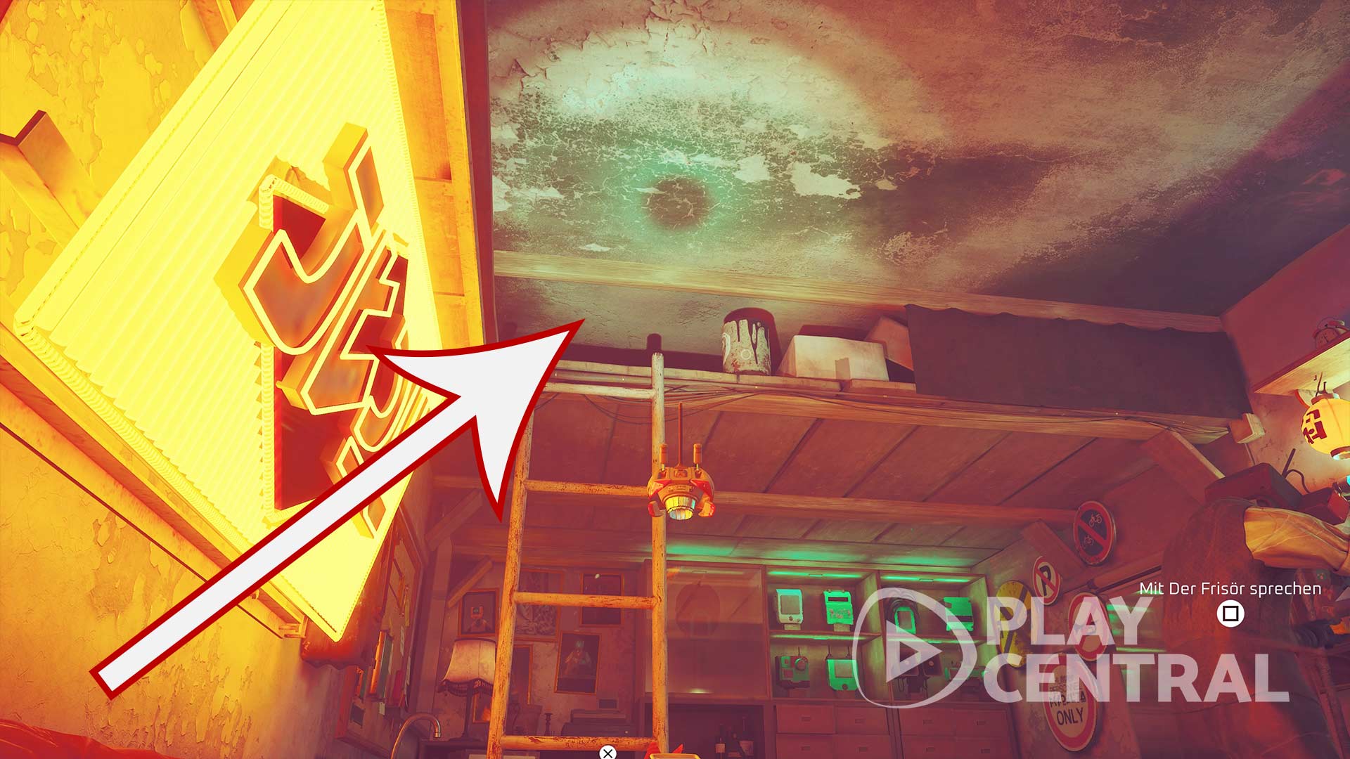 Die Dächer (9/27): Nachdem ihr die zweite Gruppe Zurks passiert habt, springt über einen kleinen Spalt und schon steht ihr vor einem großen, flackernden Neonschild.