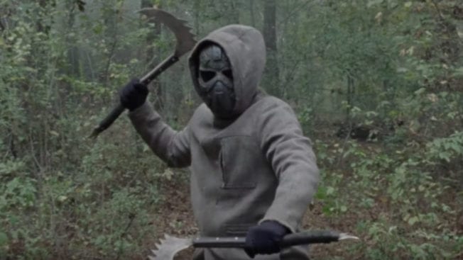 Als Aaron (Ross Marquand) und Alden (Callan McAuliffe) auf Beta (Ryan Hurst) und seine Horde von Flüsterern und Zombies geraten, erscheint erstmals der Fremde mit einer eisernen Maske und zwei gezackten Ninja-Schwertern. Wer hinter der Maske steckt, möchte Serien-Macherin Angela Kang aus verständlichen Gründen noch nicht verraten. Fest steht, dass es sich wohl um eine völlig neue Figur handelt, die so nicht in den Comics vorkommt. Wird hier etwa ein völlig neuer Gegenspieler angekündigt?