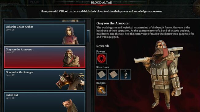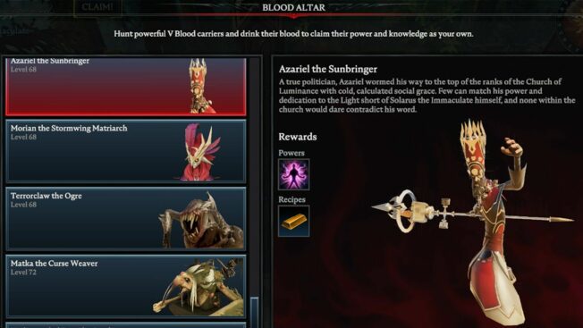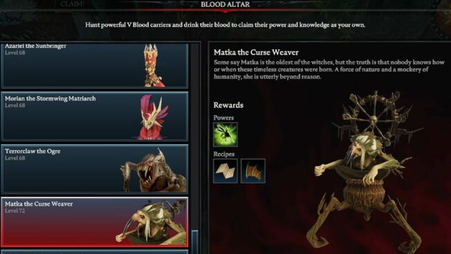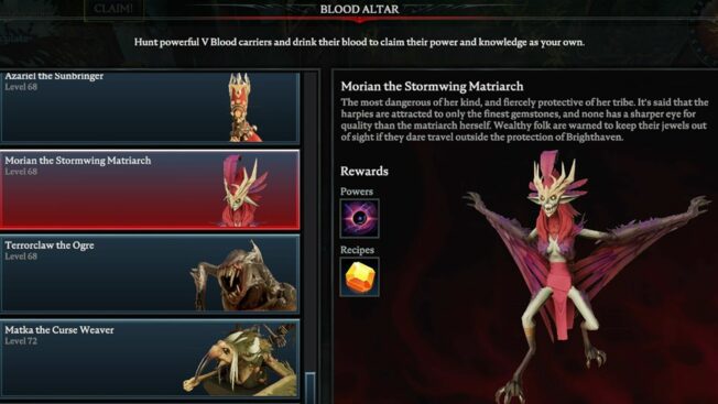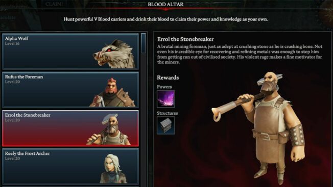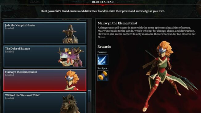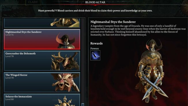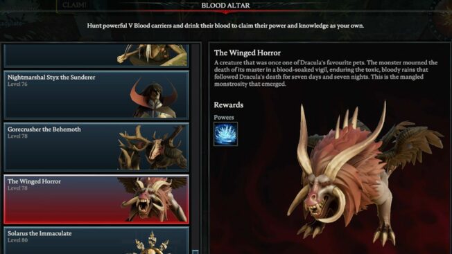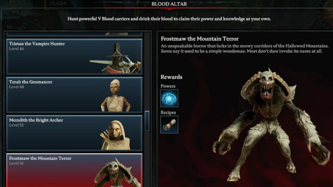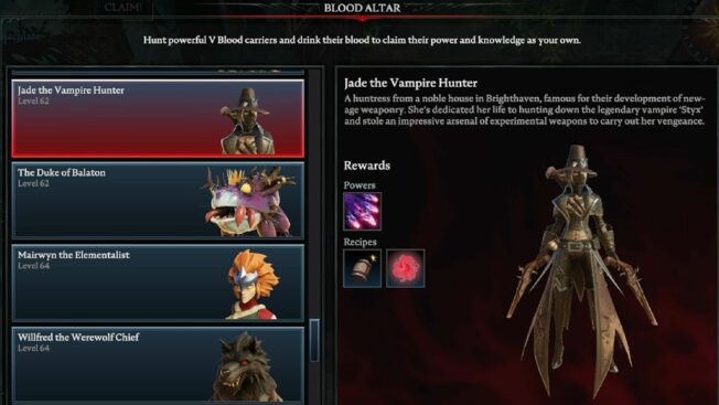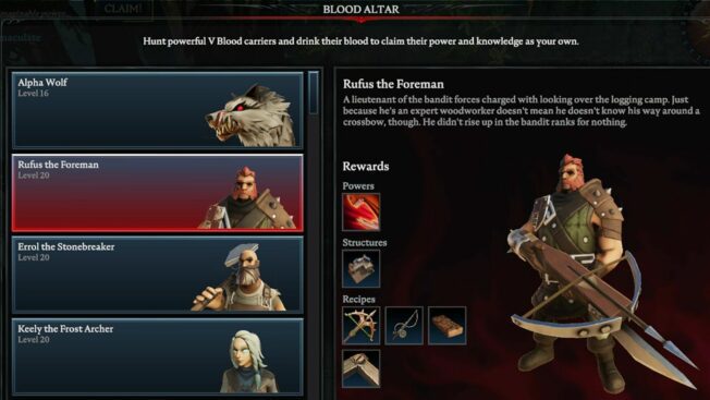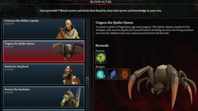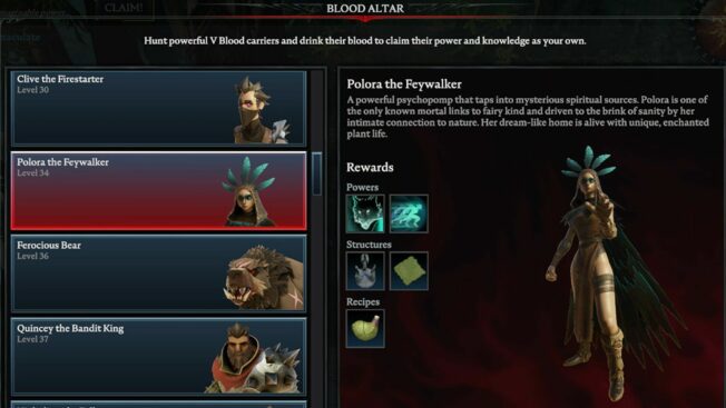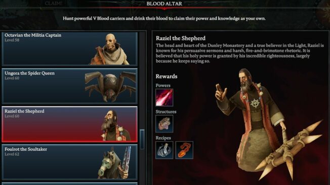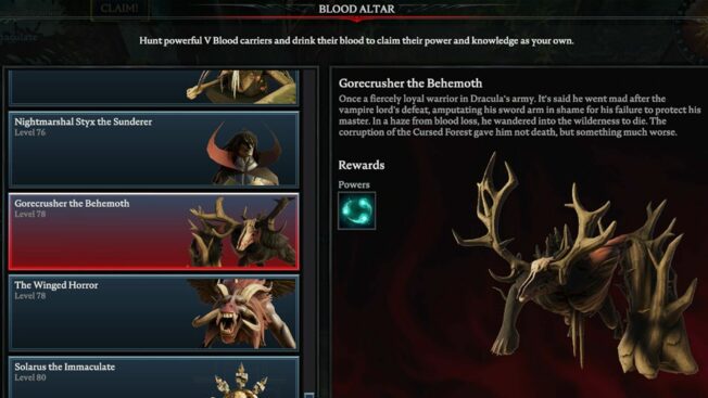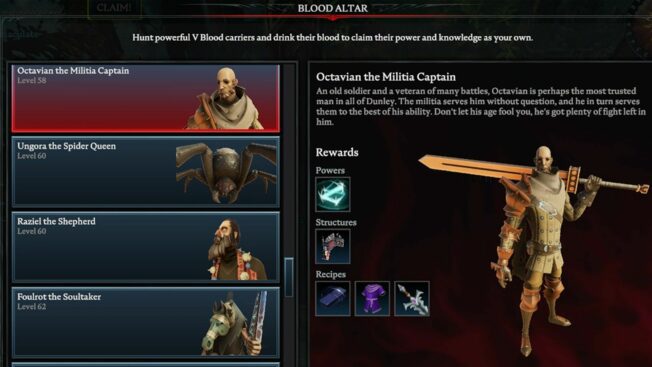 Hierbei handelt es sich um einen der schwersten Bosse in ganz „V Rising“, der selbst erfahrenen Spieler*innen einiges abverlangt. Es wird empfohlen, für diesem Kampf einem Klan beizutreten und den V Blood in der Gruppe zu attackieren, da er solo eine Menge Zeit, Geduld und wahrscheinlich auch mehrere Anläufe fordert.