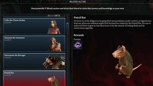 Die Faulige Ratte ist der einzige V Blood in „V Rising“, der weder an einer bestimmten Stelle auf euch wartet, noch auf einem Weg patrouilliert. Um ihn bekämpfen zu können, müsst ihr ihn mit einem Ungeziefernest beschwören, wie genau ihr das tut, verraten wir euch in unserem Guide Faulige Ratte in V Rising beschwören. So findet ihr den geheimen V Blood.
