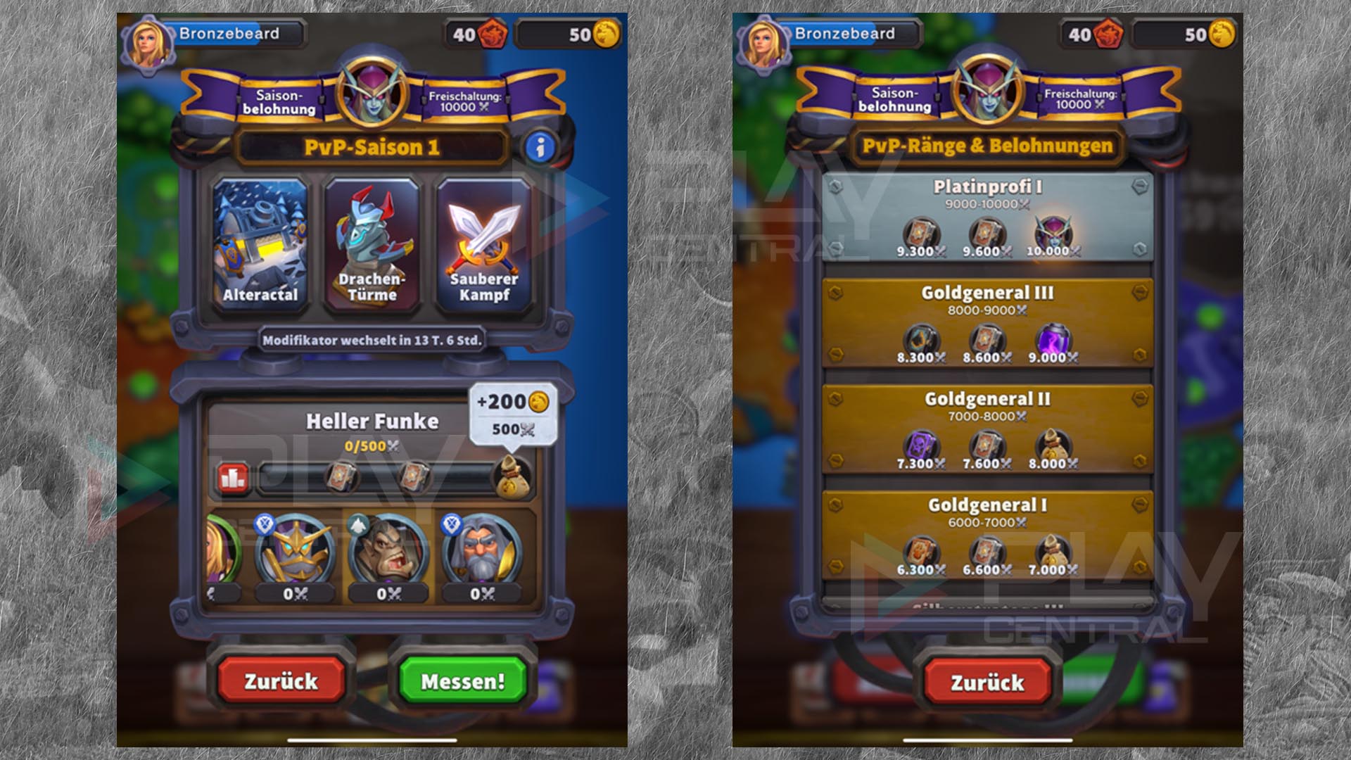Dafür müsst ihr allerdings in den Kämpfen antreten, um an die begehrten Kampfpunkte zu gelangen. Am Anfang gibt es für die ersten 500 Kampfpunkte schon 200 x Gold und je höher ihr kommt, desto mehr Gold gibt es dann auch.