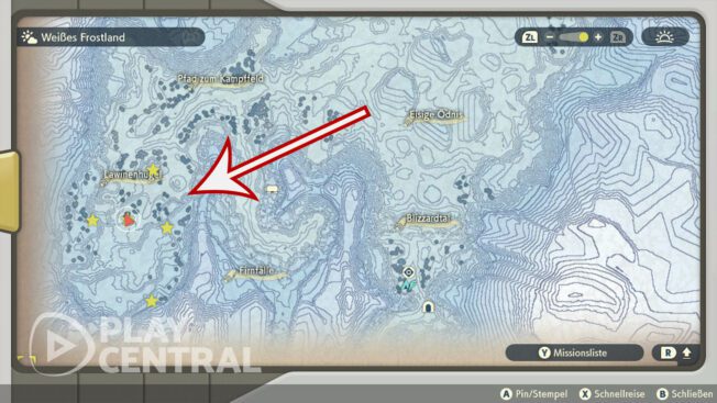 Unsere Suche führt uns in den Westen zum Lawinenhügel. Hier haben sich auch alle Vulpix an Ort und Stelle versteckt. Aber Vorsicht! Ihr müsst schon genau hinsehen, denn aufgrund ihrer Farbe kann man sie schnell übersehen.