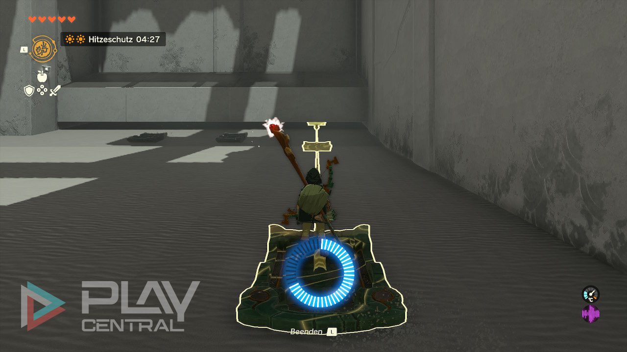 Der Maya-tata-Schrein ist einer der wenigen Schreine im Land der Gerudo, den ihr nicht großartig suchen müsst. Wahrscheinlich ist, dass ihr an ihm ganz automatisch vorbeikommt, wenn ihr dem Hauptziel Untersuche die vier Regionen nachgeht, denn in diesem Fall verschlägt es euch früher oder später auch in die Gerudo-Wüste.