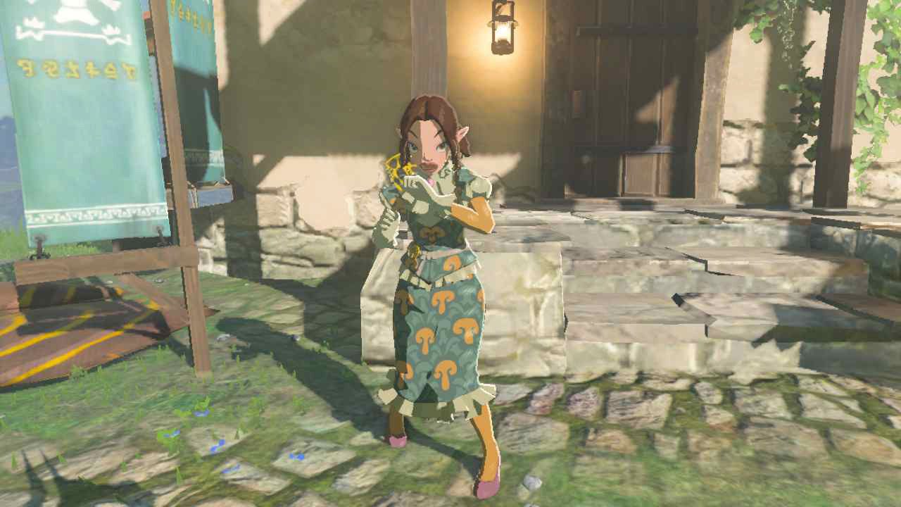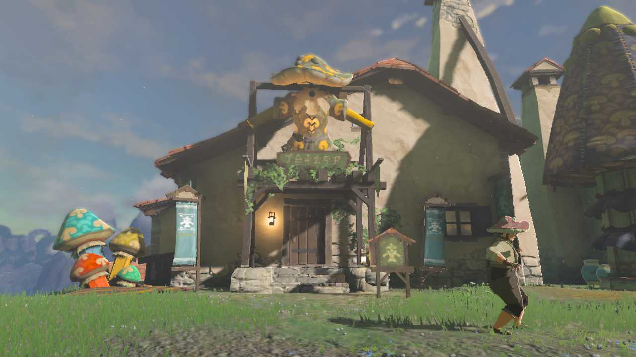 Wie ihr seht, hat das Dorf seit Breath of the Wild eine neue Bewohnerin erhalten, die ihre neue Heimat mit allerlei Kunstwerken schmückt, die allesamt wie Pilze aussehen. Ganz zum Ärger des aktuellen Bürgermeisters.